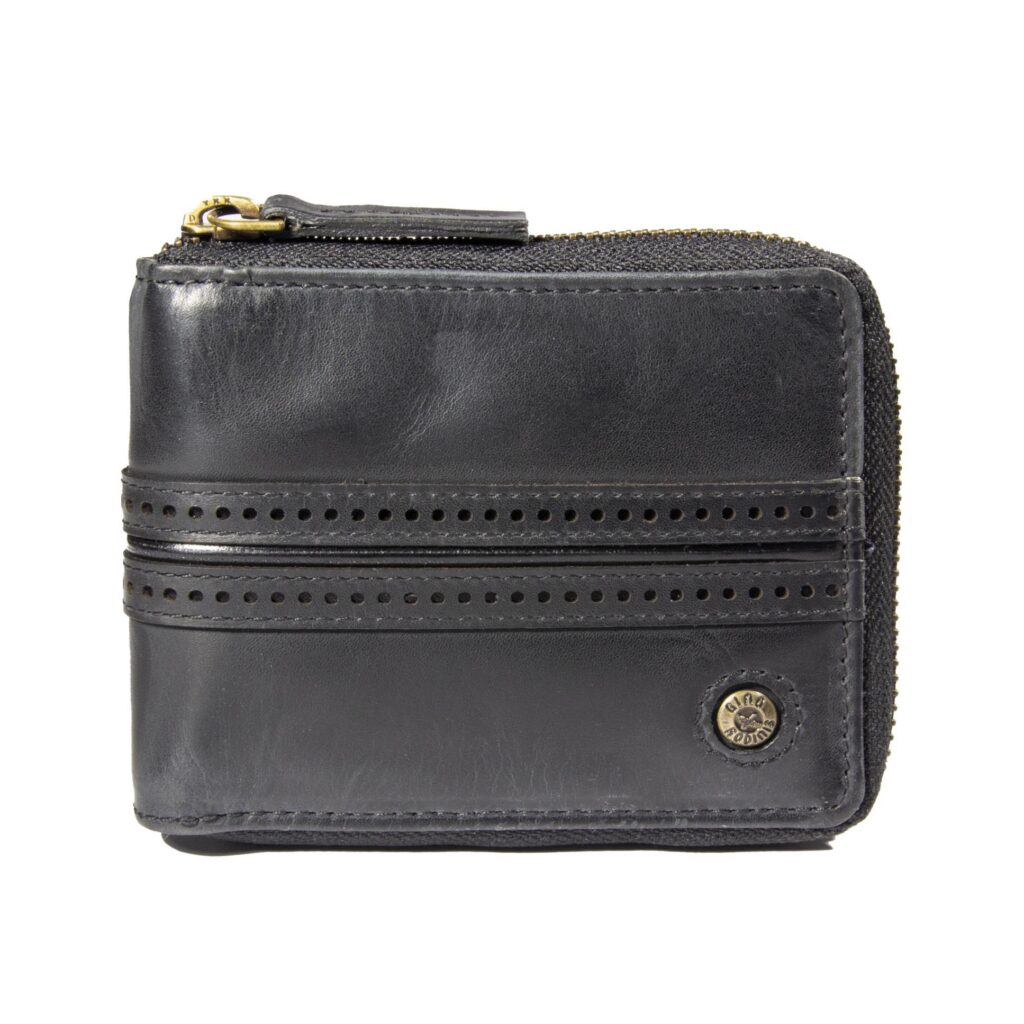 - Abertura principal curva, con cierre de cremallera, tira cierre con cuero