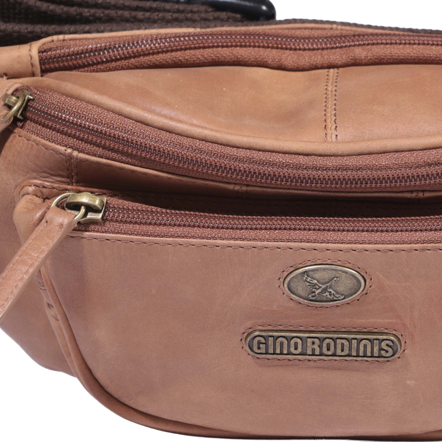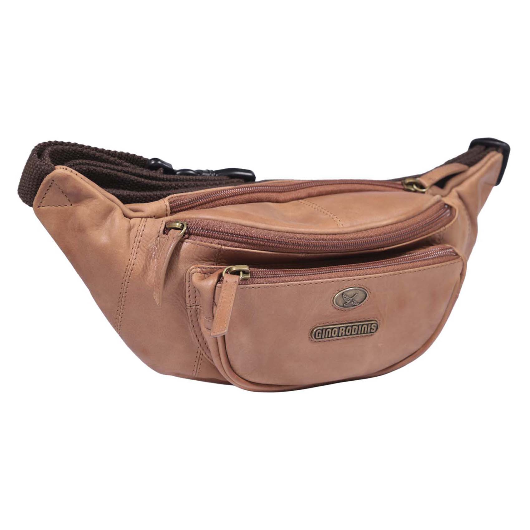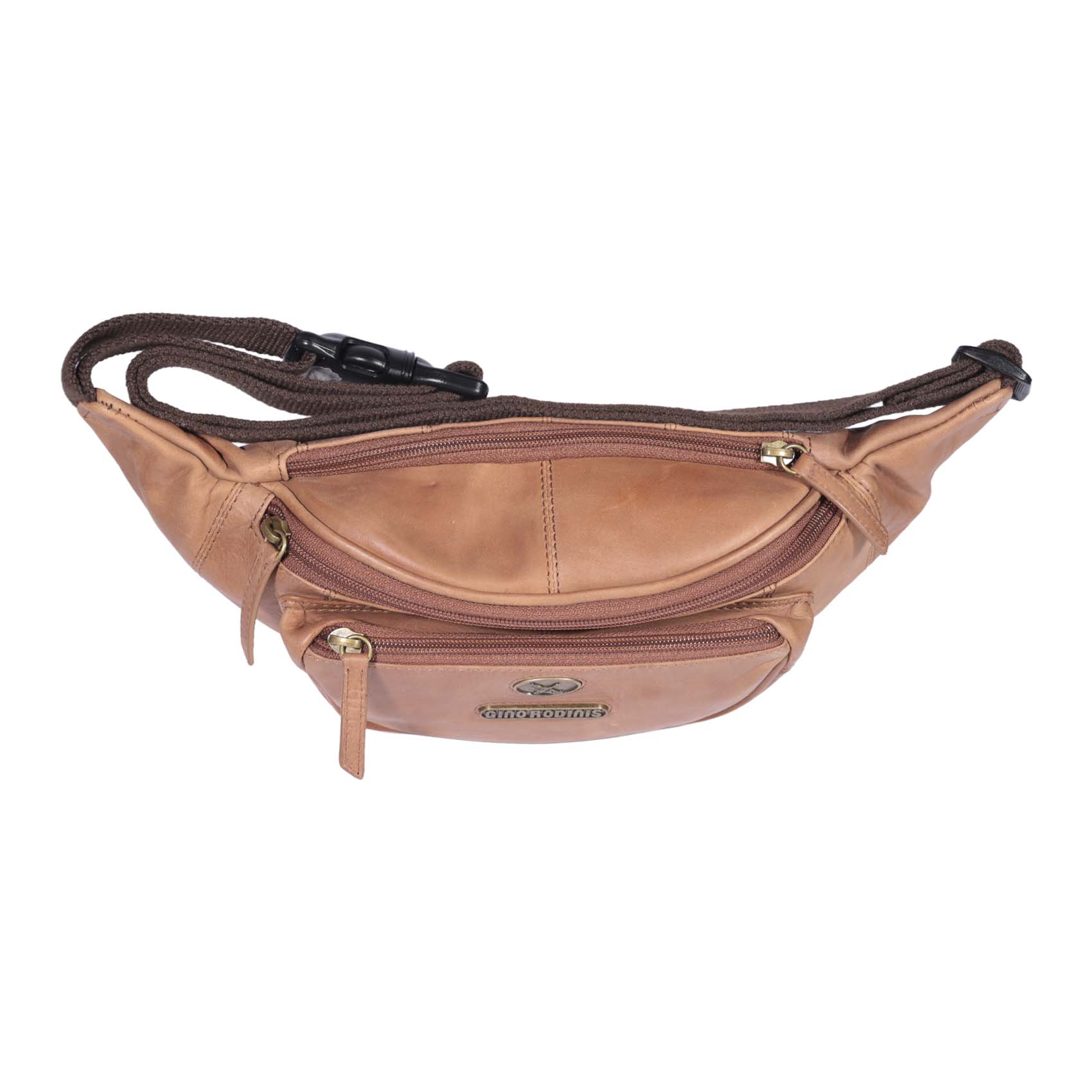 Banano de cuero con diseño italiano. Sofisticado y funcional, con bolsillos con cierre y correa ajustable para mayor comodidad.