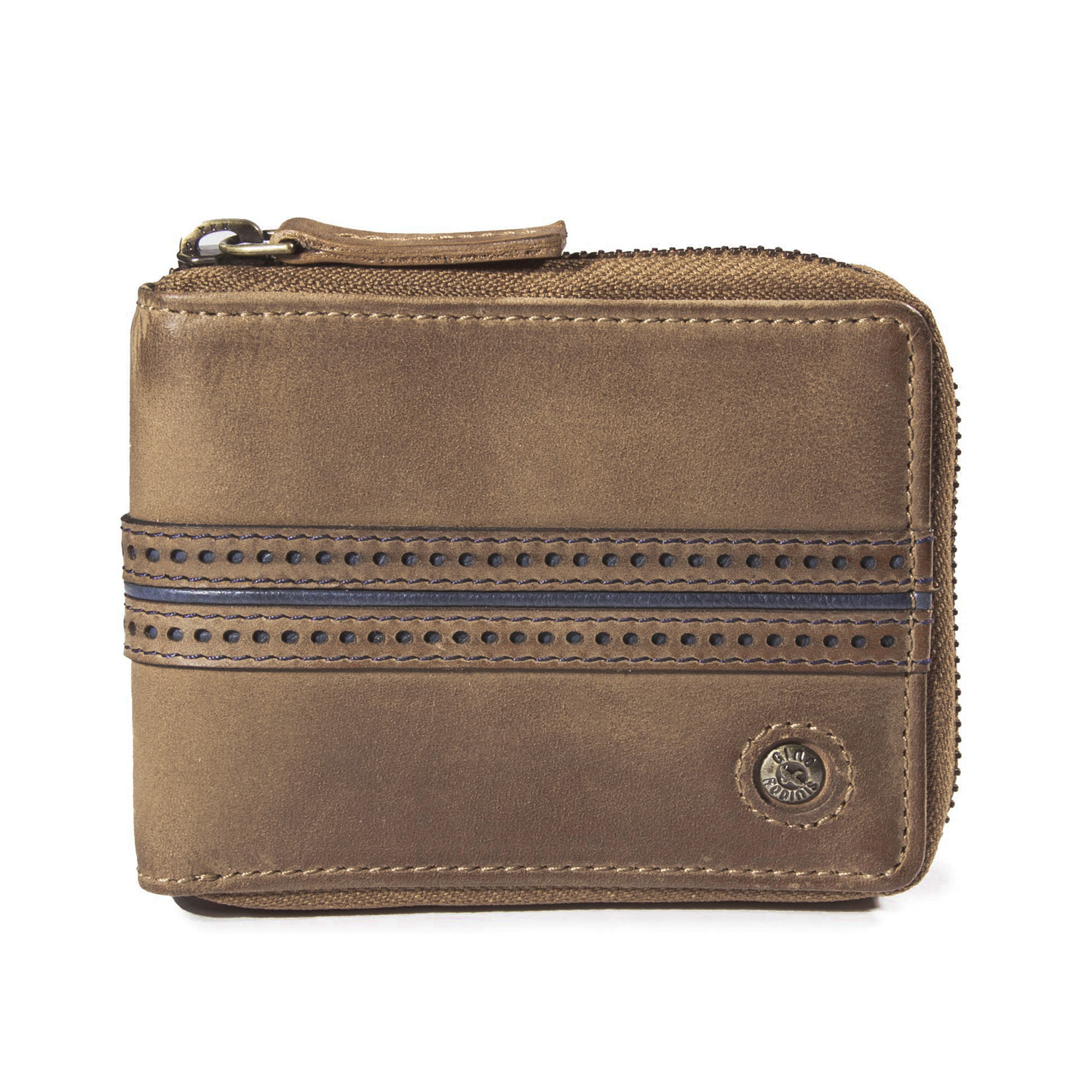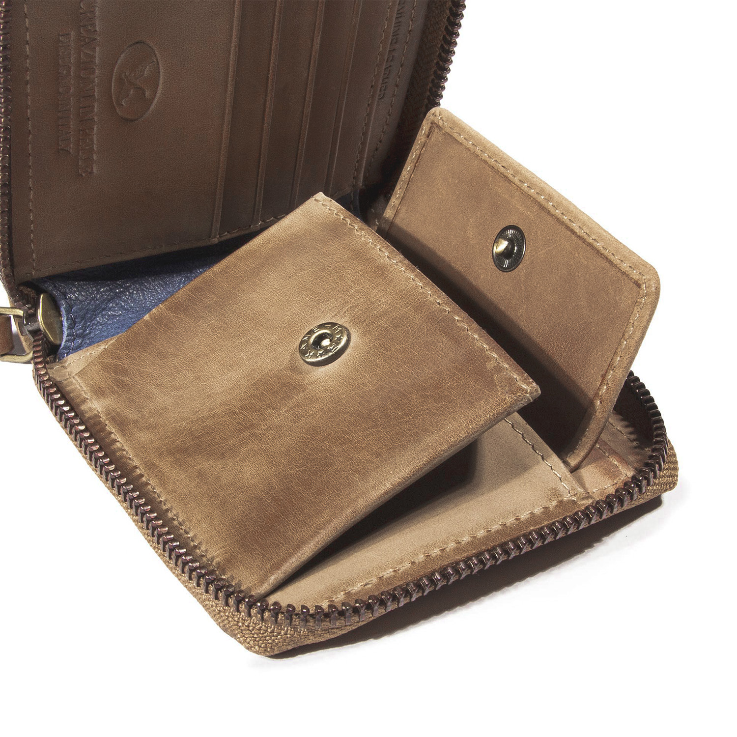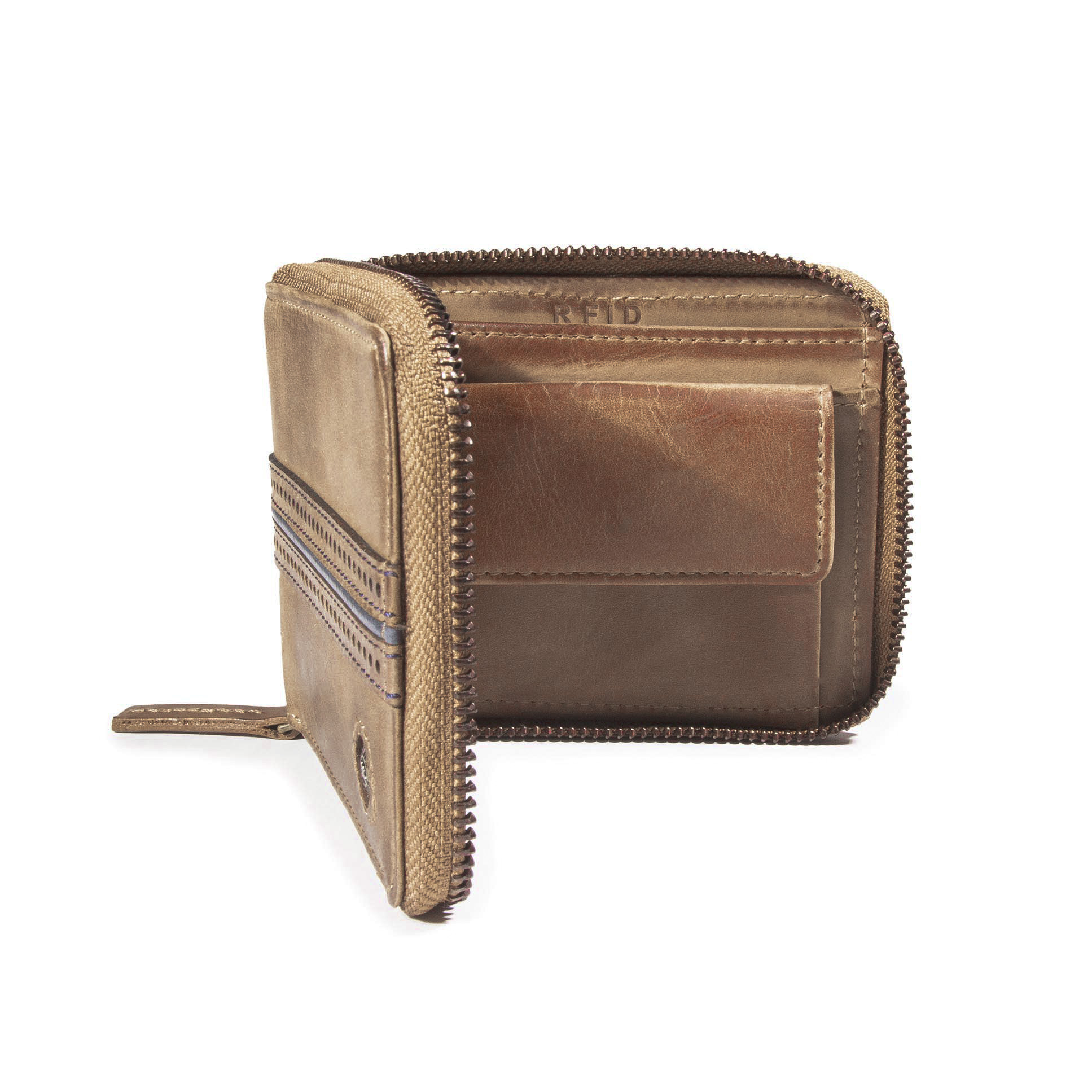 BILLETERA DE CUERO CON CIERRE Y MONEDERO INTERIOR