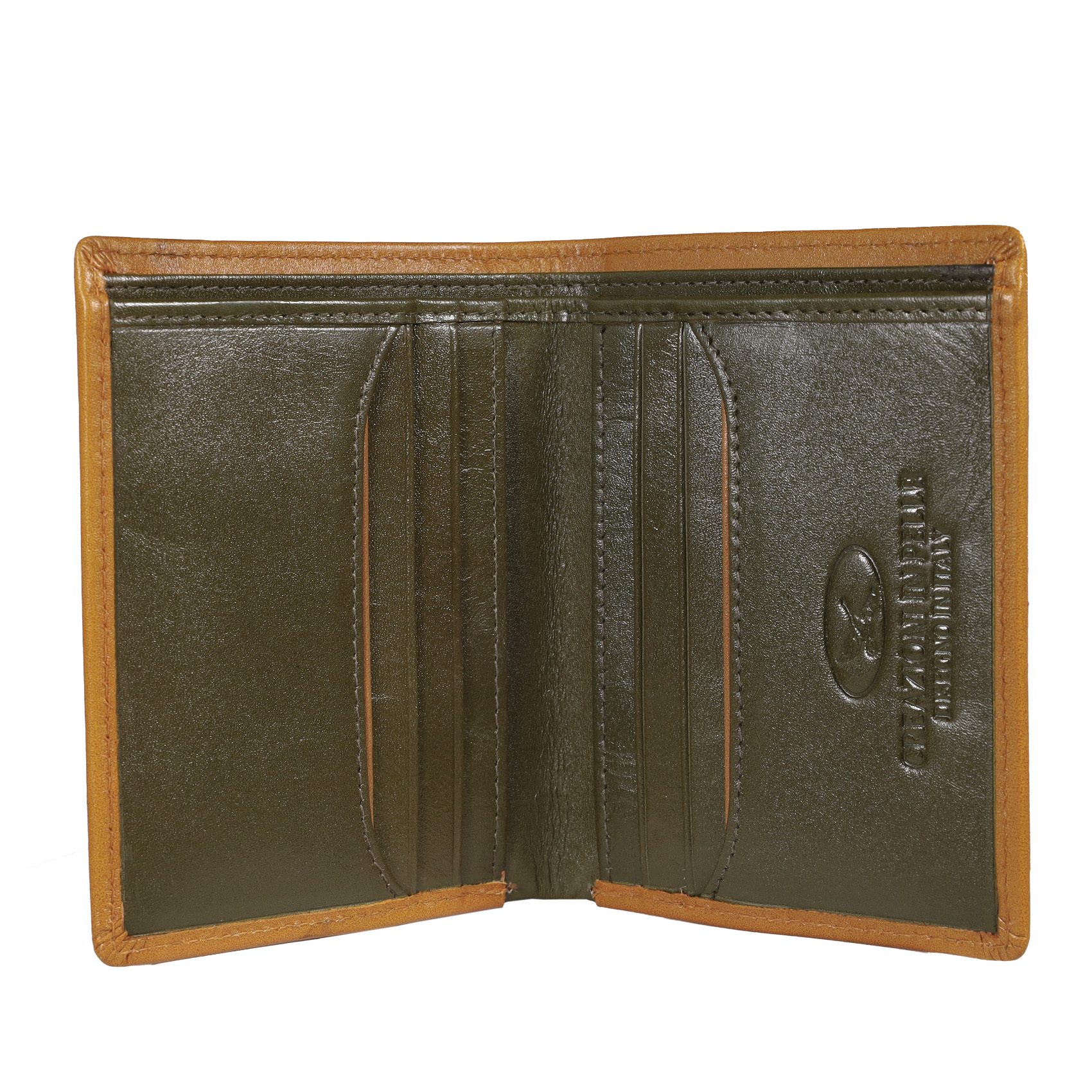 BILLETERA DE CUERO VERTICAL CON BOLSILLO DOBLE PARA BILLETES