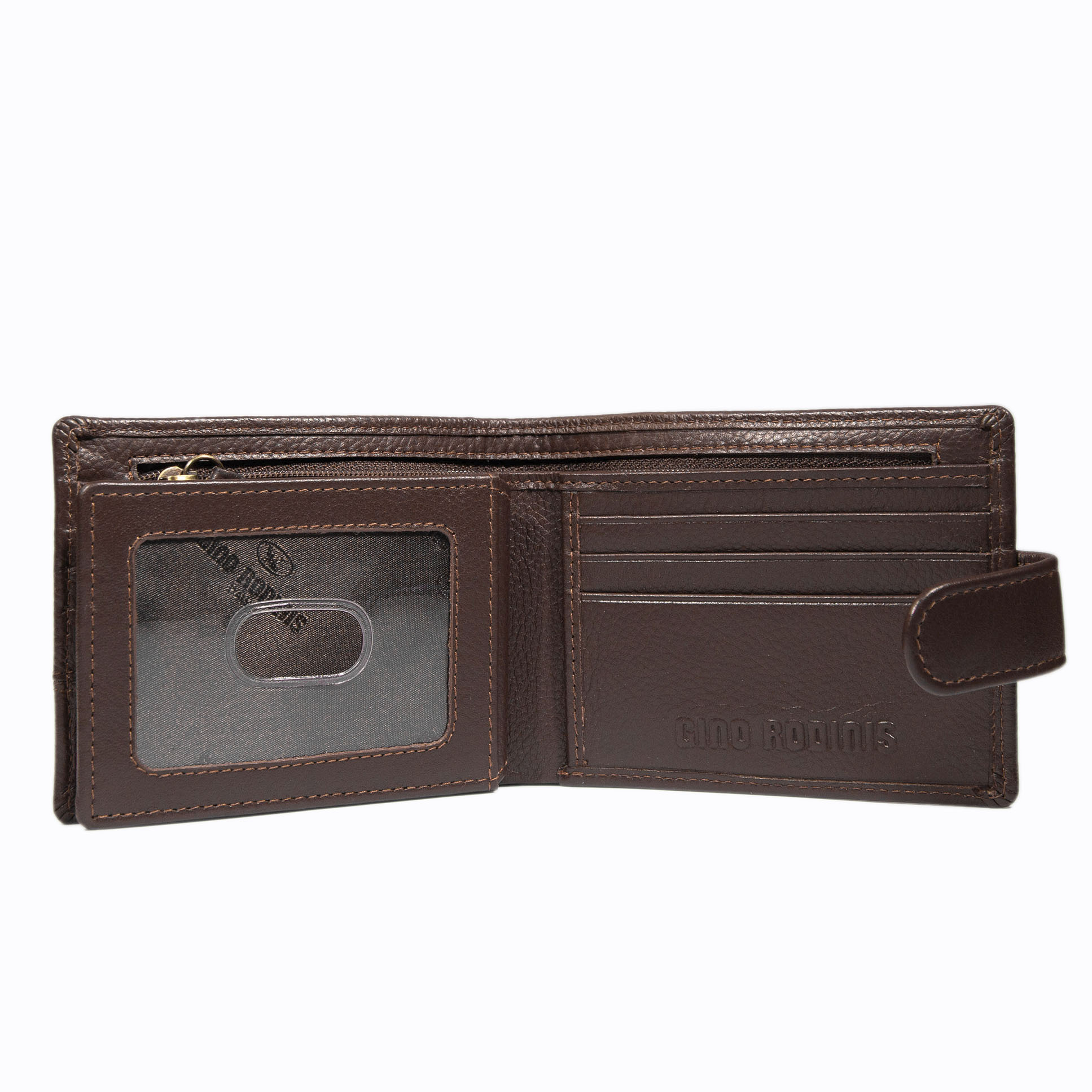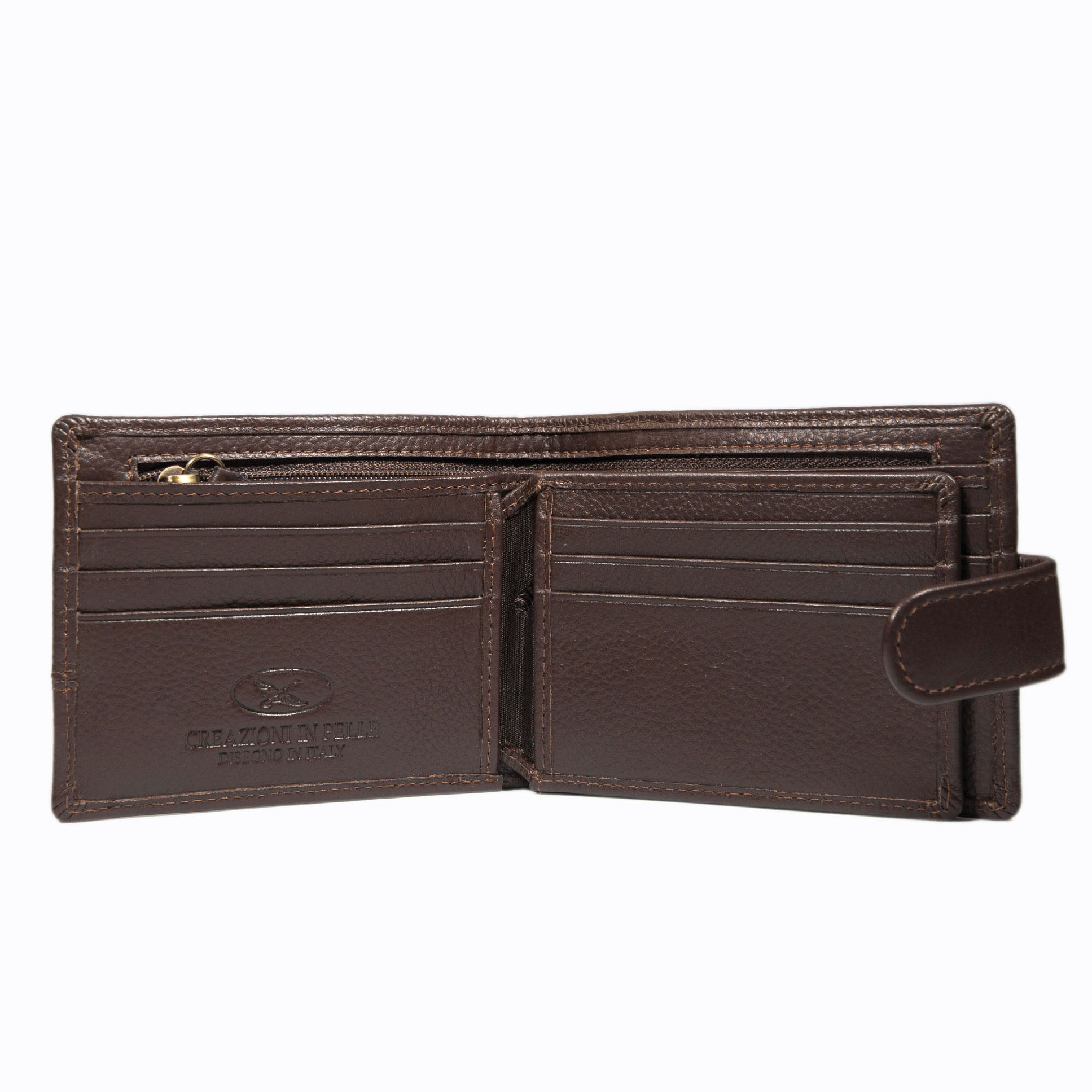 BILLETERA DE CUERO CON BOLSILLO INTERIOR CON CIERRE NUEVE TARJETAS, PIEZA CENTRAL ABATIBLE