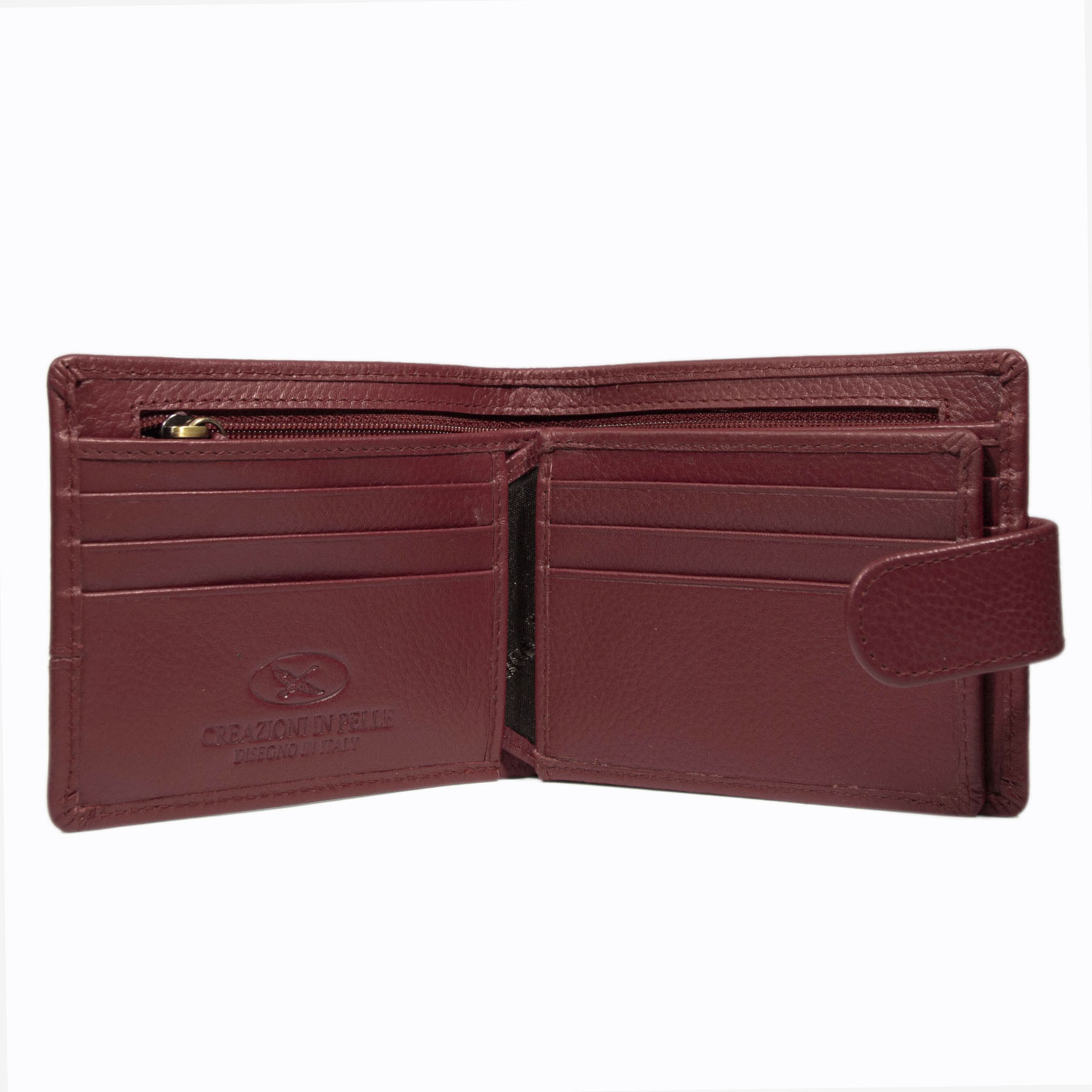 BILLETERA DE CUERO CON BOLSILLO INTERIOR CON CIERRE NUEVE TARJETAS, PIEZA CENTRAL ABATIBLE