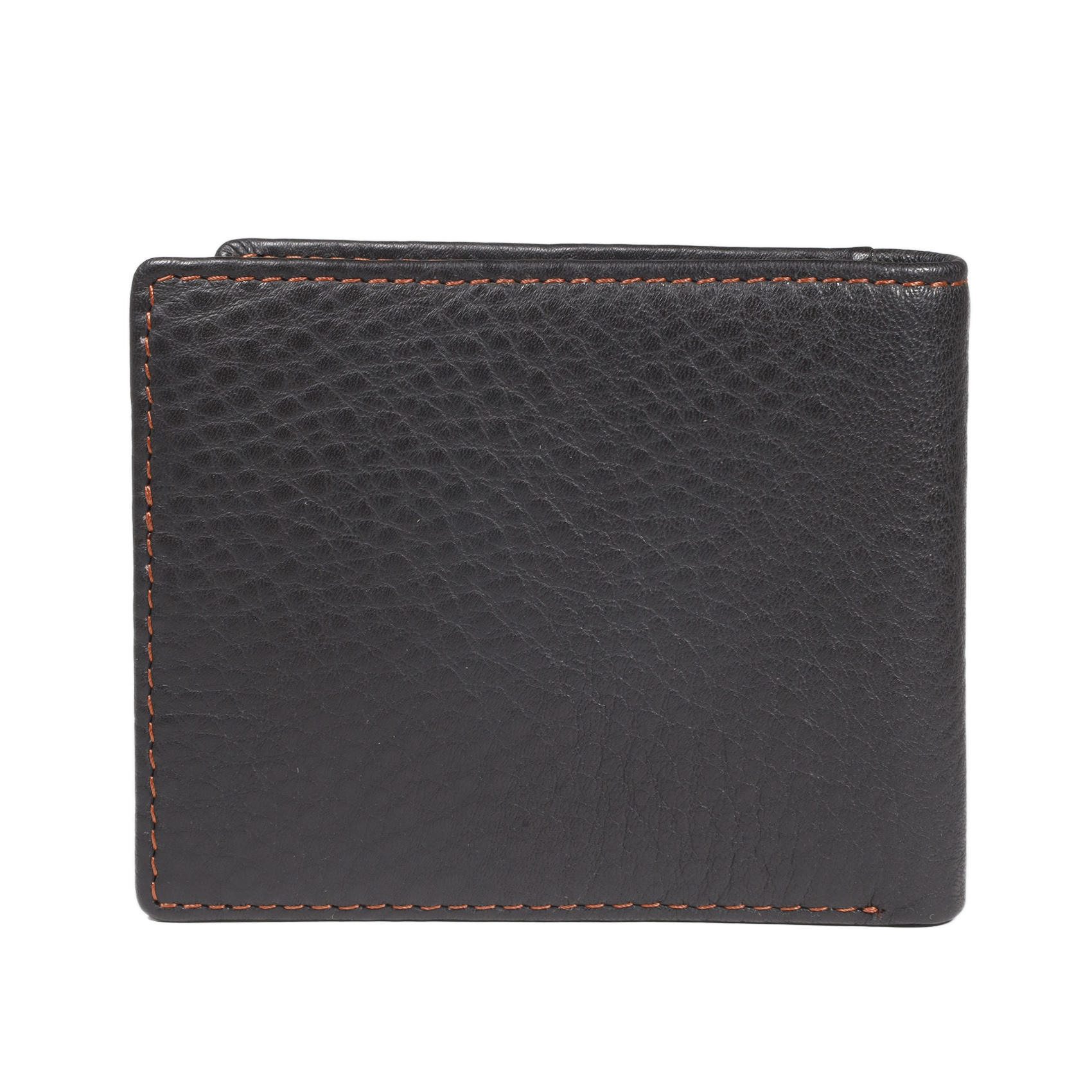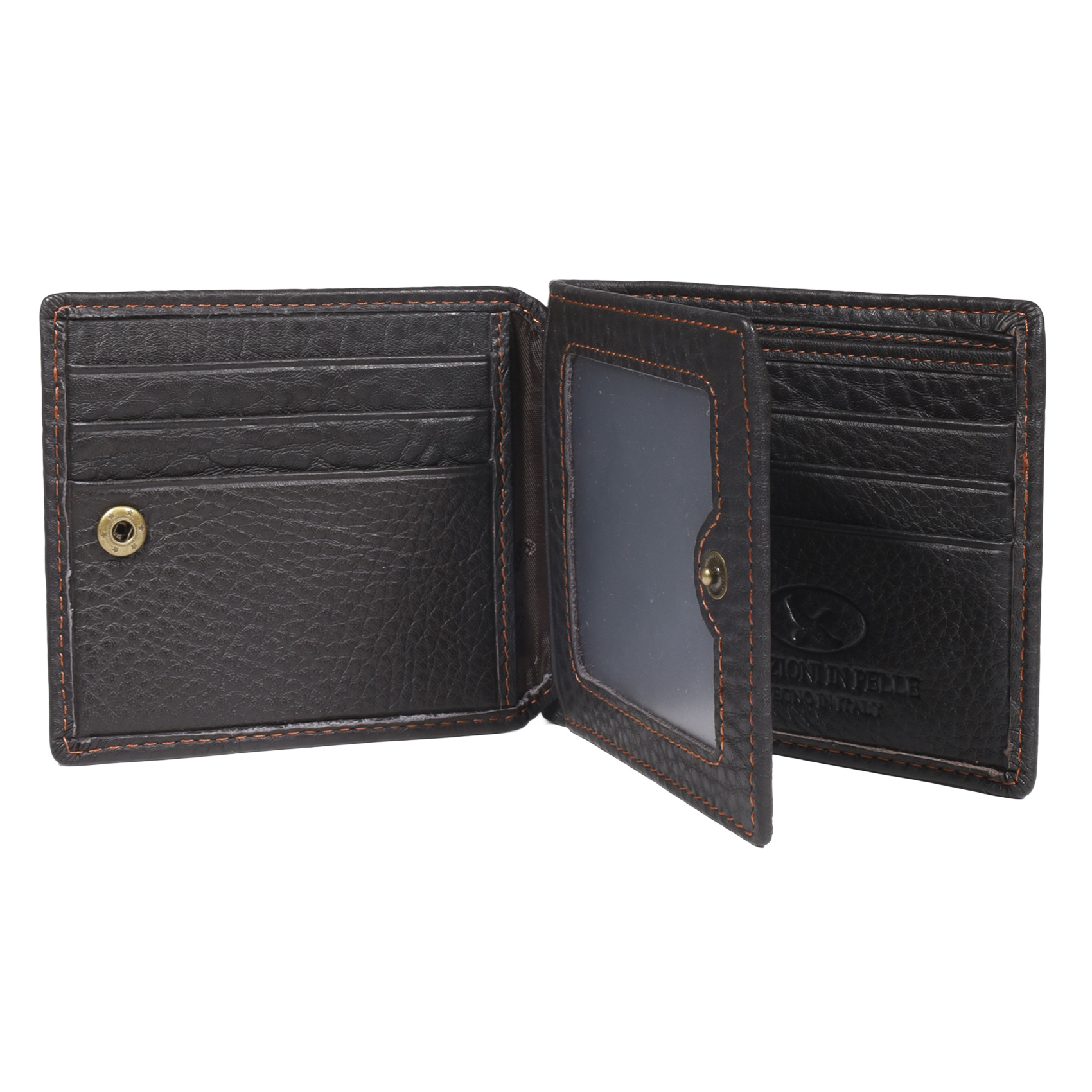 BILLETERA DE CUERO CON DOS SECCIONES, UNA DE ELLAS CON BROCHE DE PRESIÓN, TECNOLOGÍA RFID