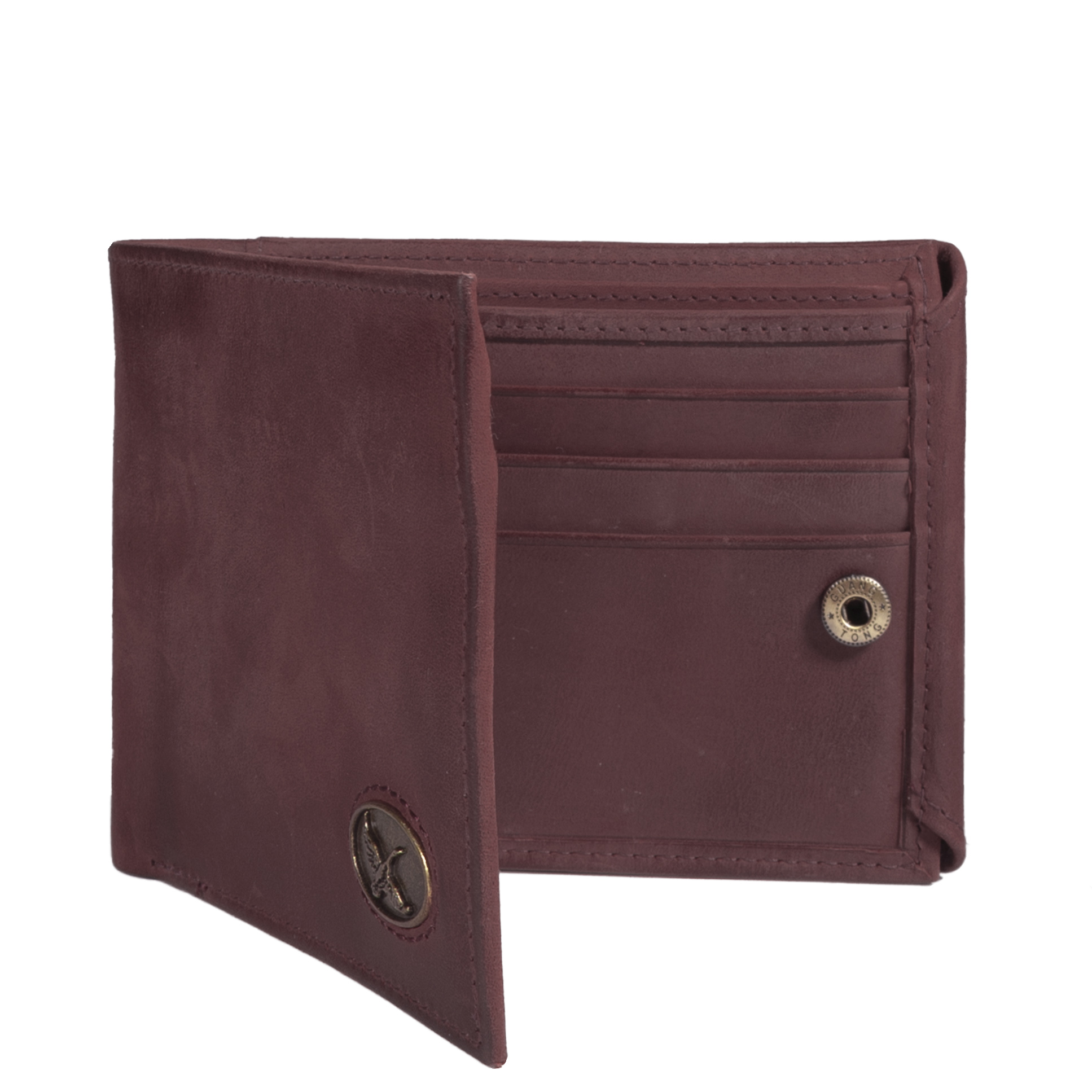 - Billetera dividida en dos secciones independientes, cerradas con broche de presión.