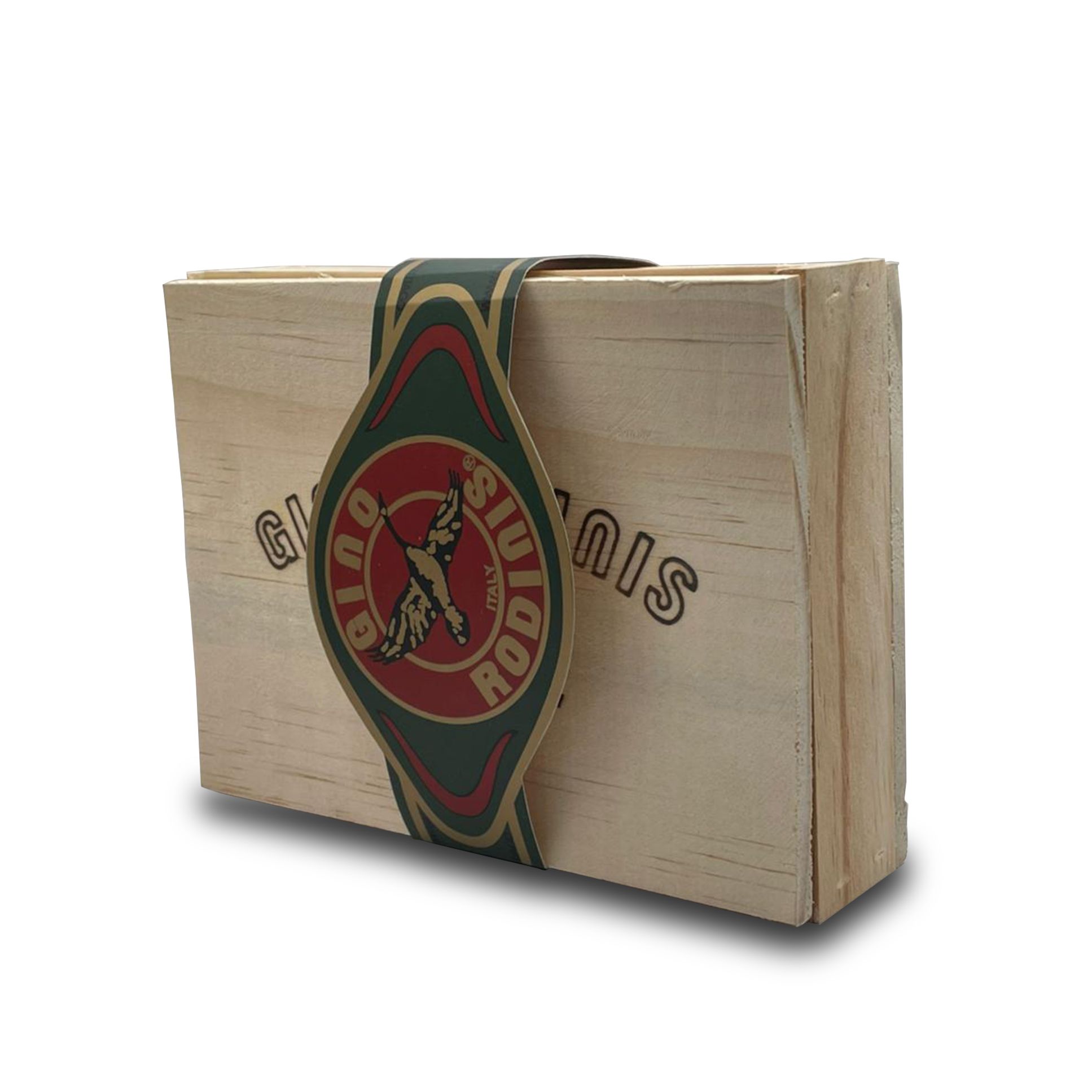 - Grabado sobre relieve con el nombre “Gino Rodinis”, en la parte posterior.