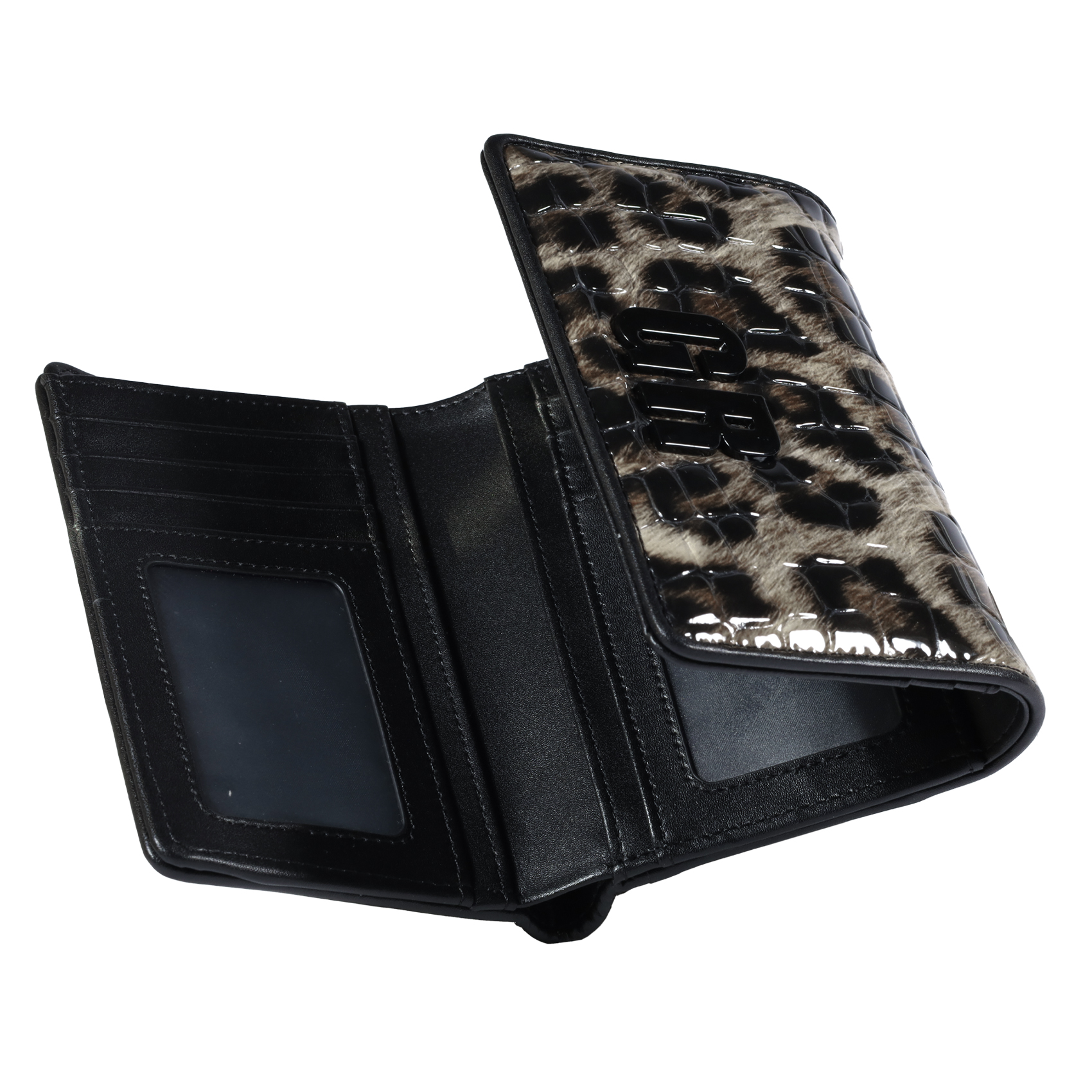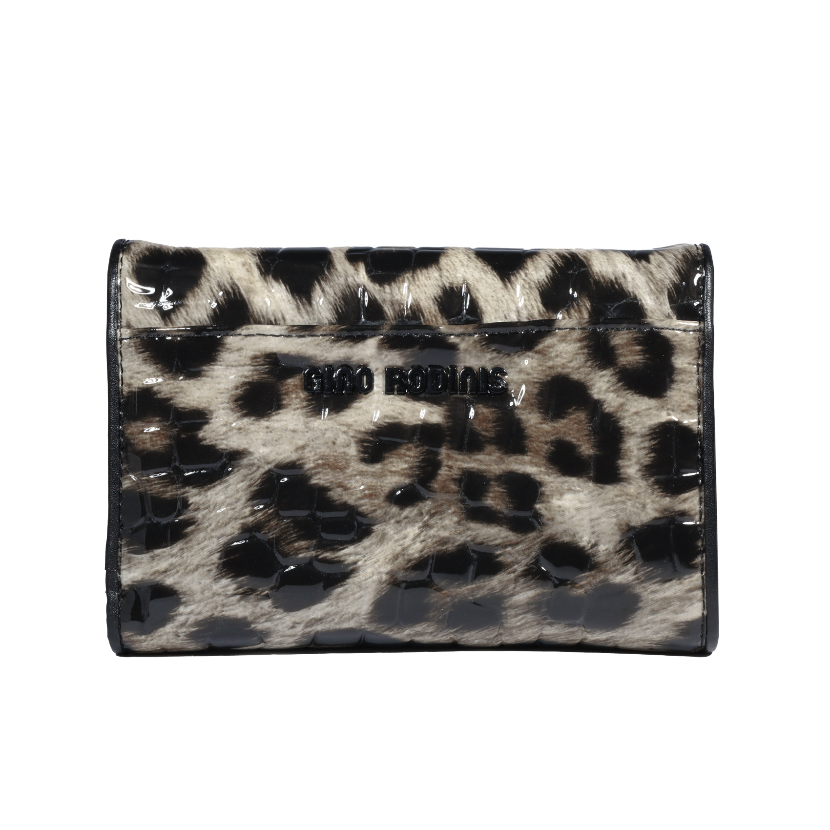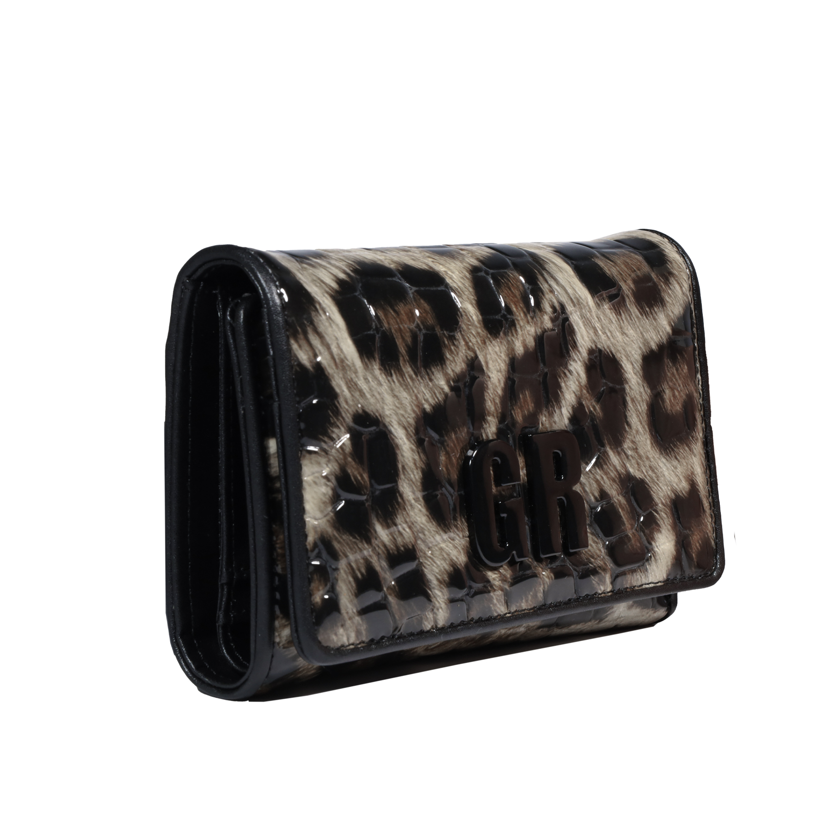 - Billetera de Mujer confeccionada con cuero animal print y terminación de lacado brillante.