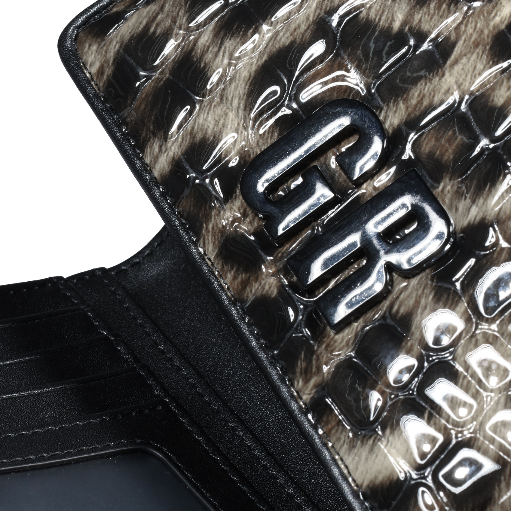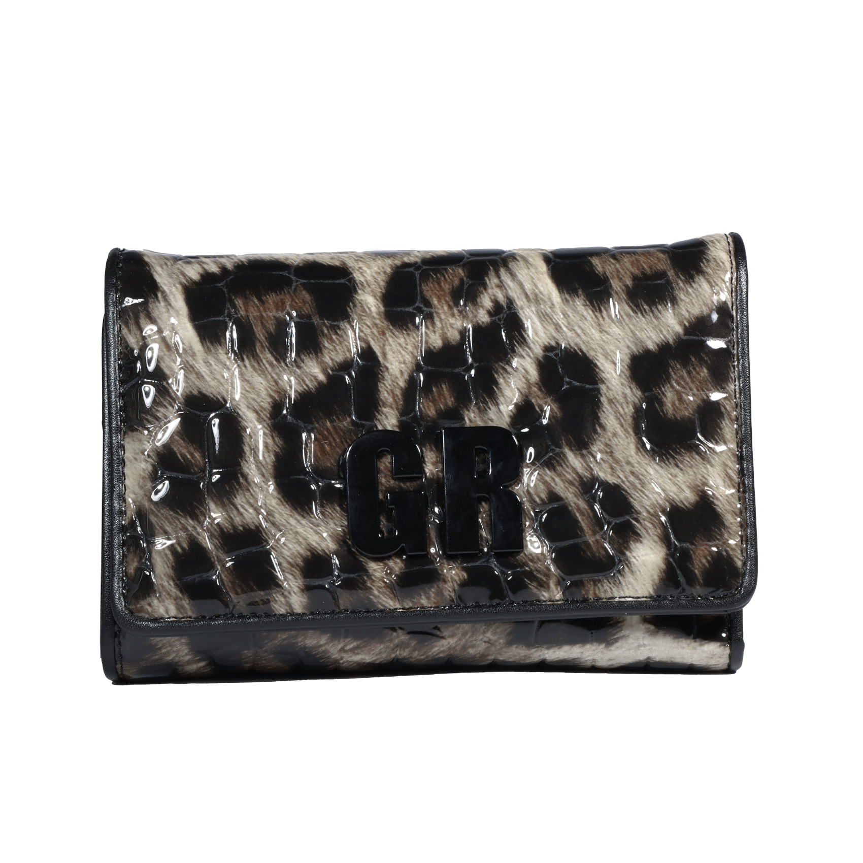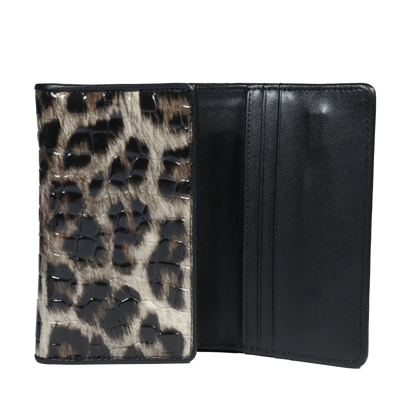 - Billetera de Mujer confeccionada con cuero animal print y terminación de lacado brillante.