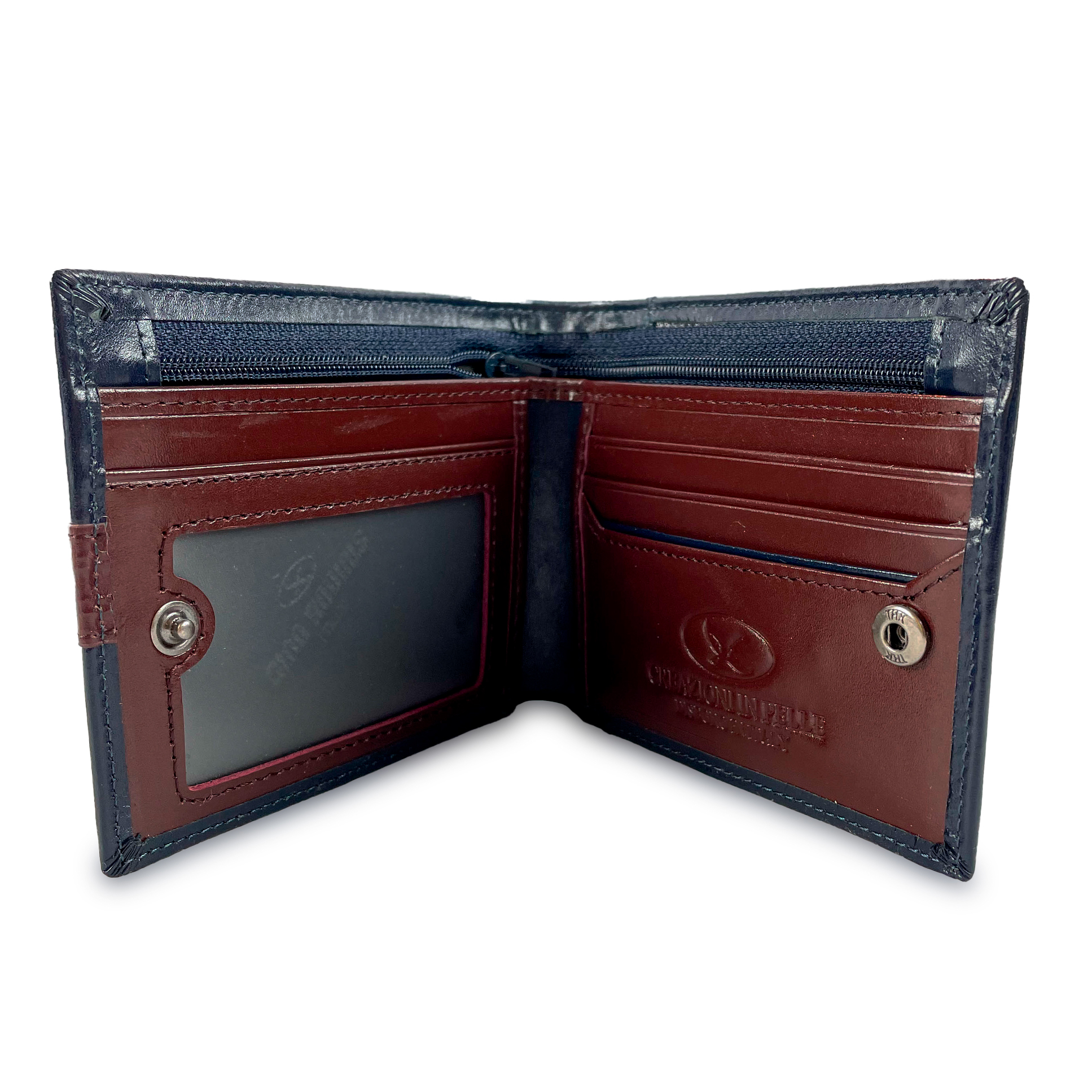 - Billetera confeccionado en cuero italiano de primera capa.