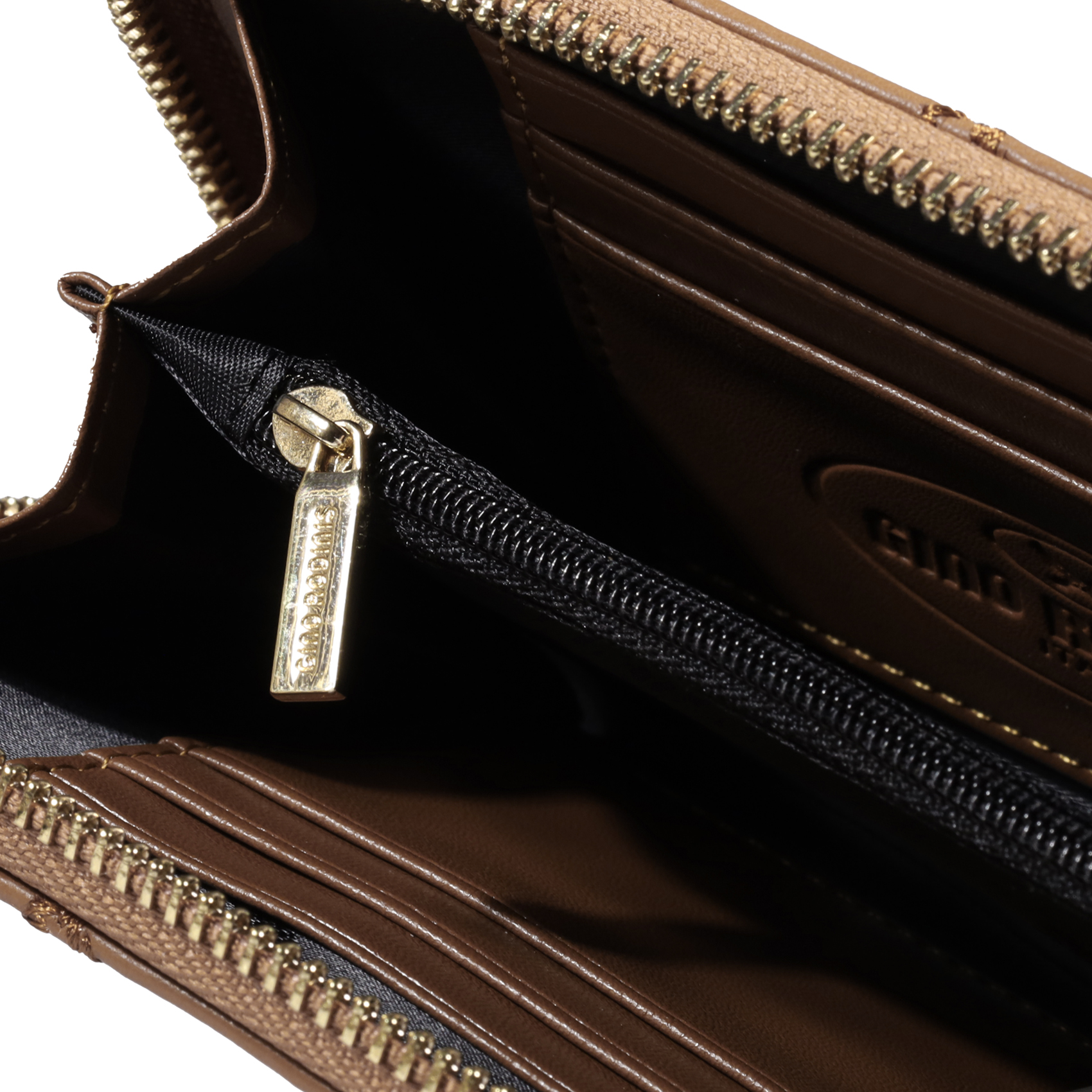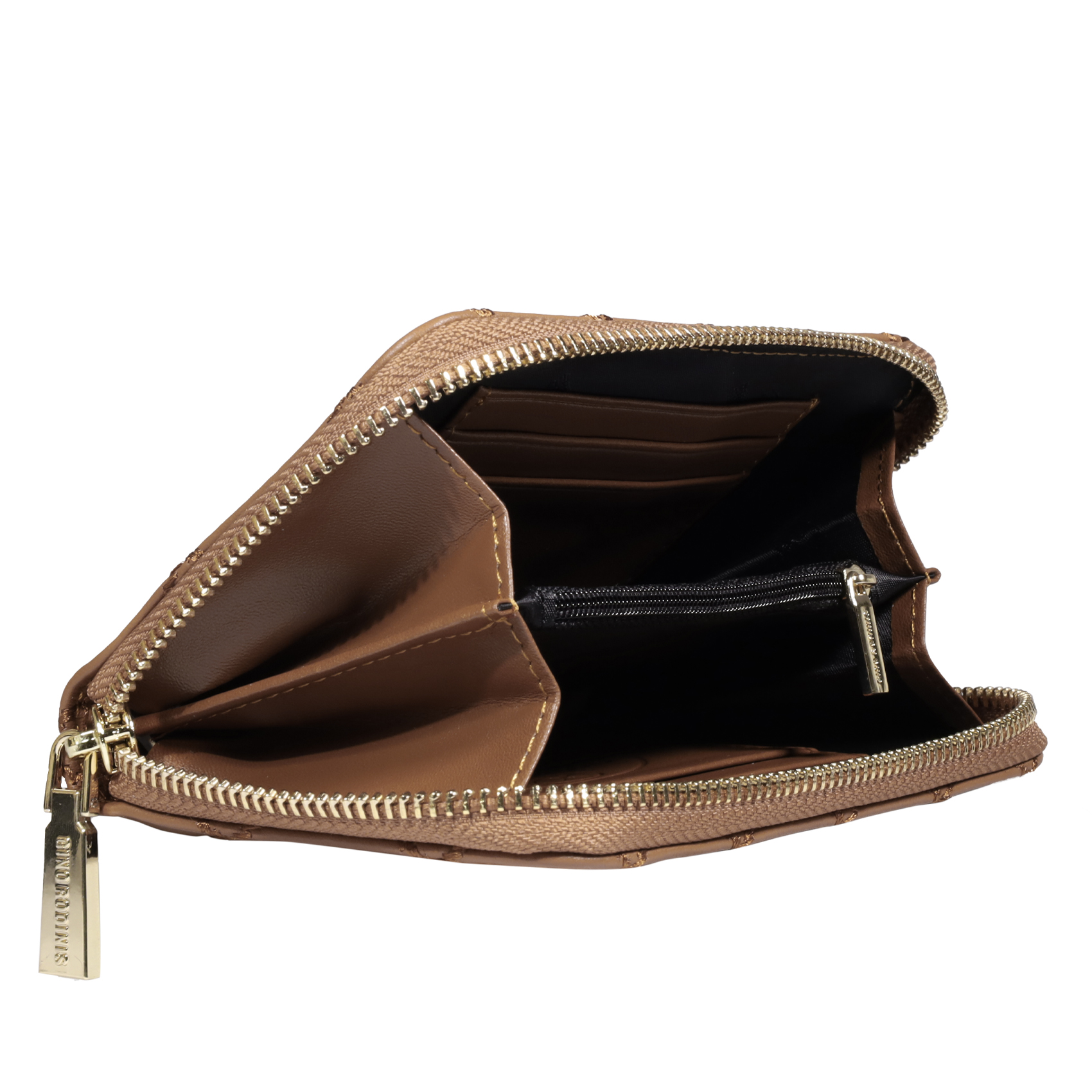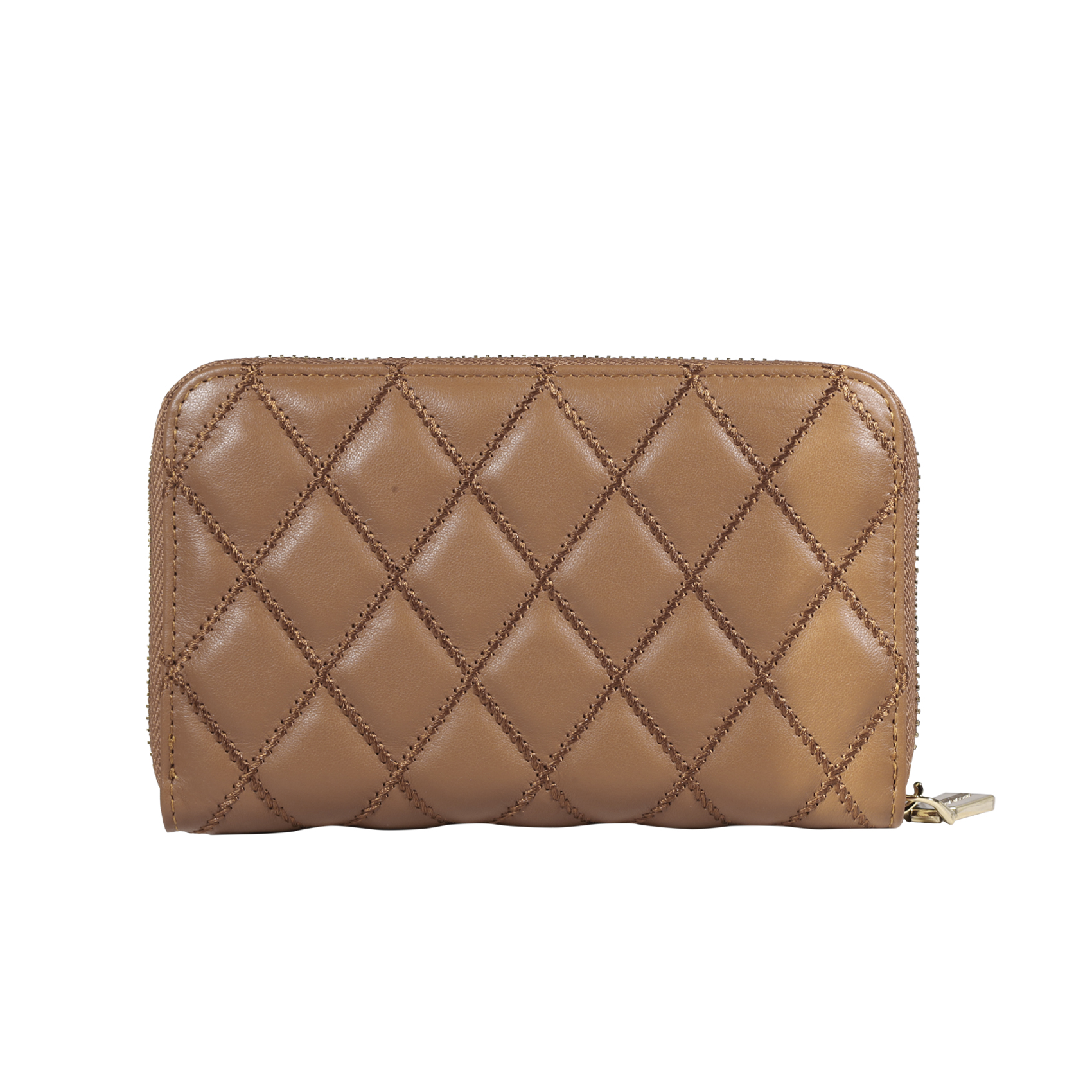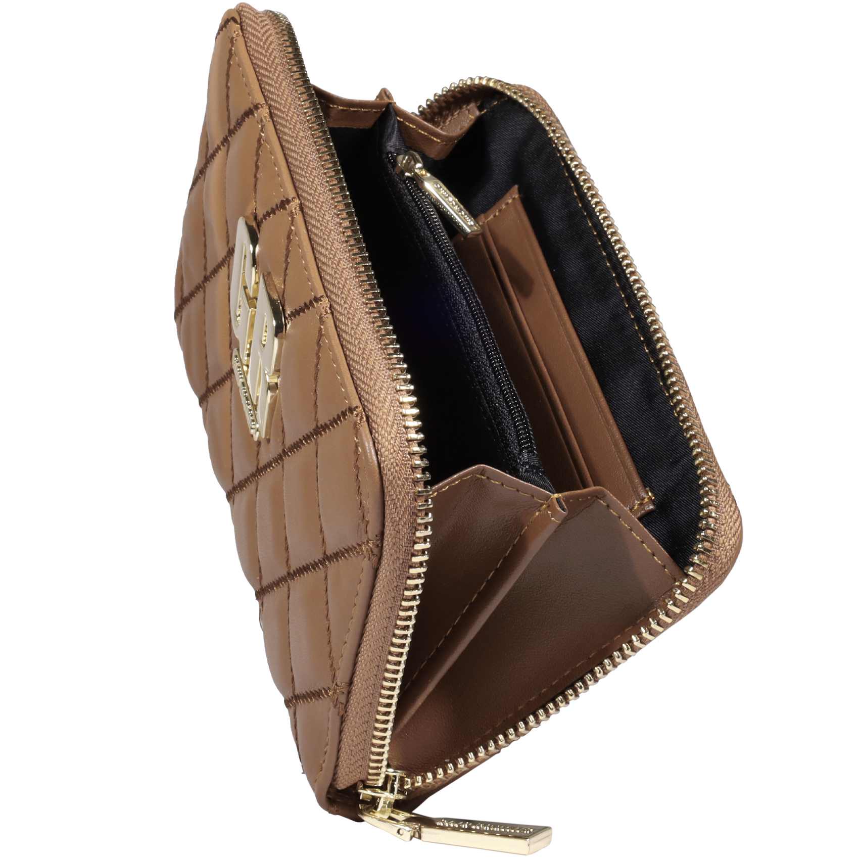 BILLETERA DE MUJER CON COSTURAS EN ROMBO, INTERIOR CON BOLSILLO CENTRAL Y CIERRE