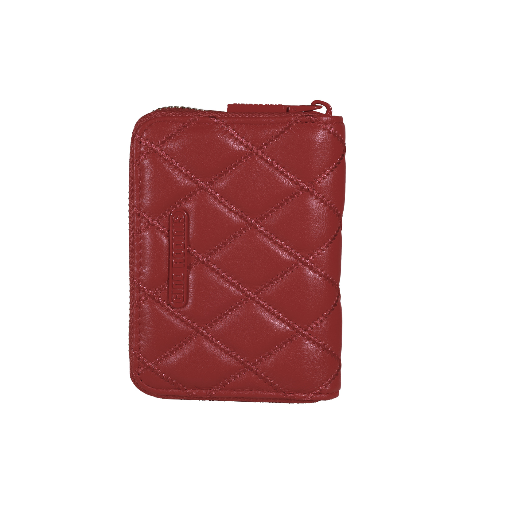- Billetera de mujer confeccionada con exclusivo cuero, con costuras en rombos.