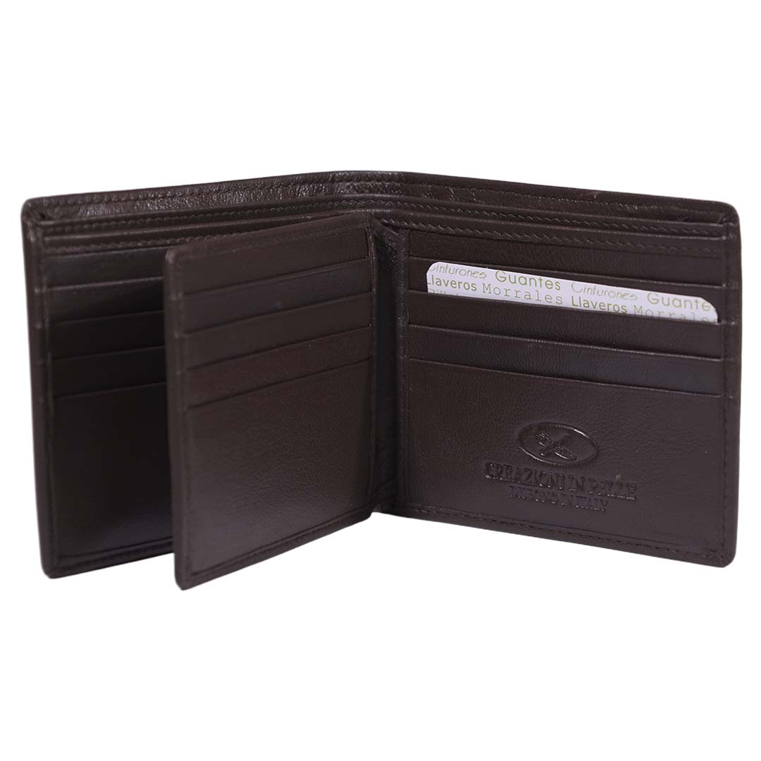 - Billetera confeccionada 100% en cuero.
