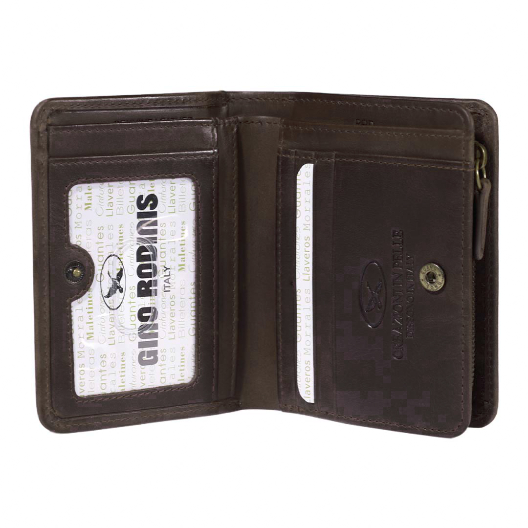 - 3 compartimientos especiales para tarjetas de crédito, más un bolsillo con mica (portafotos).