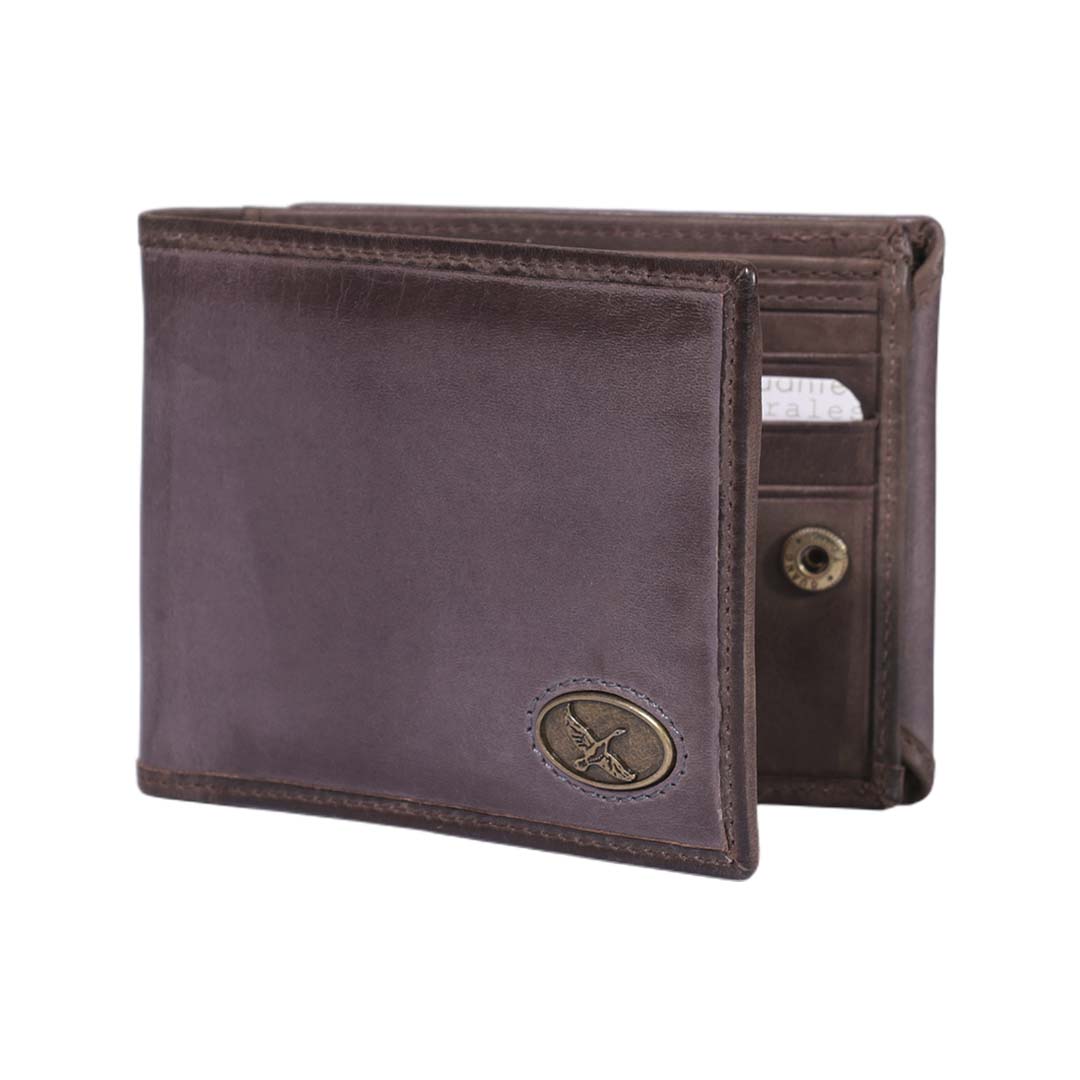 - Billetera dividida en dos secciones independientes, cerradas con broches de presión.