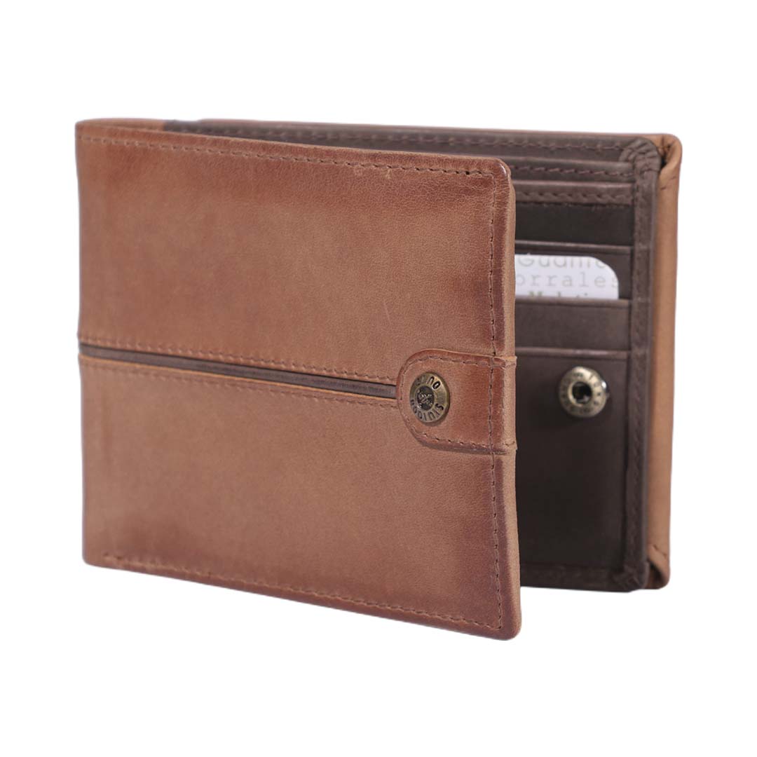 - Billetera dividida en dos secciones independientes, cerradas con broches de presión.