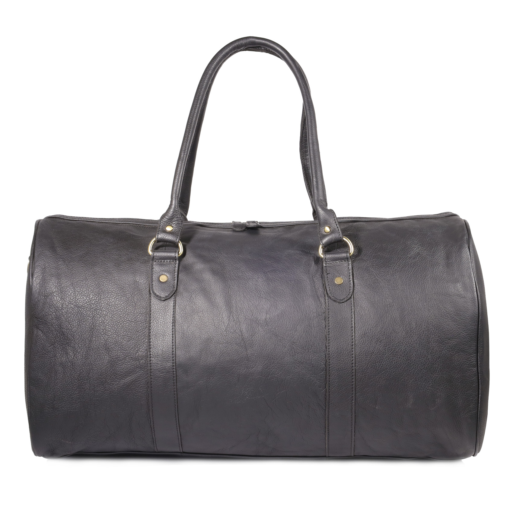 BOLSO GRANDE SEMI TUBULAR, COLOR NEGRO CON MANILLAS DE CUERO
