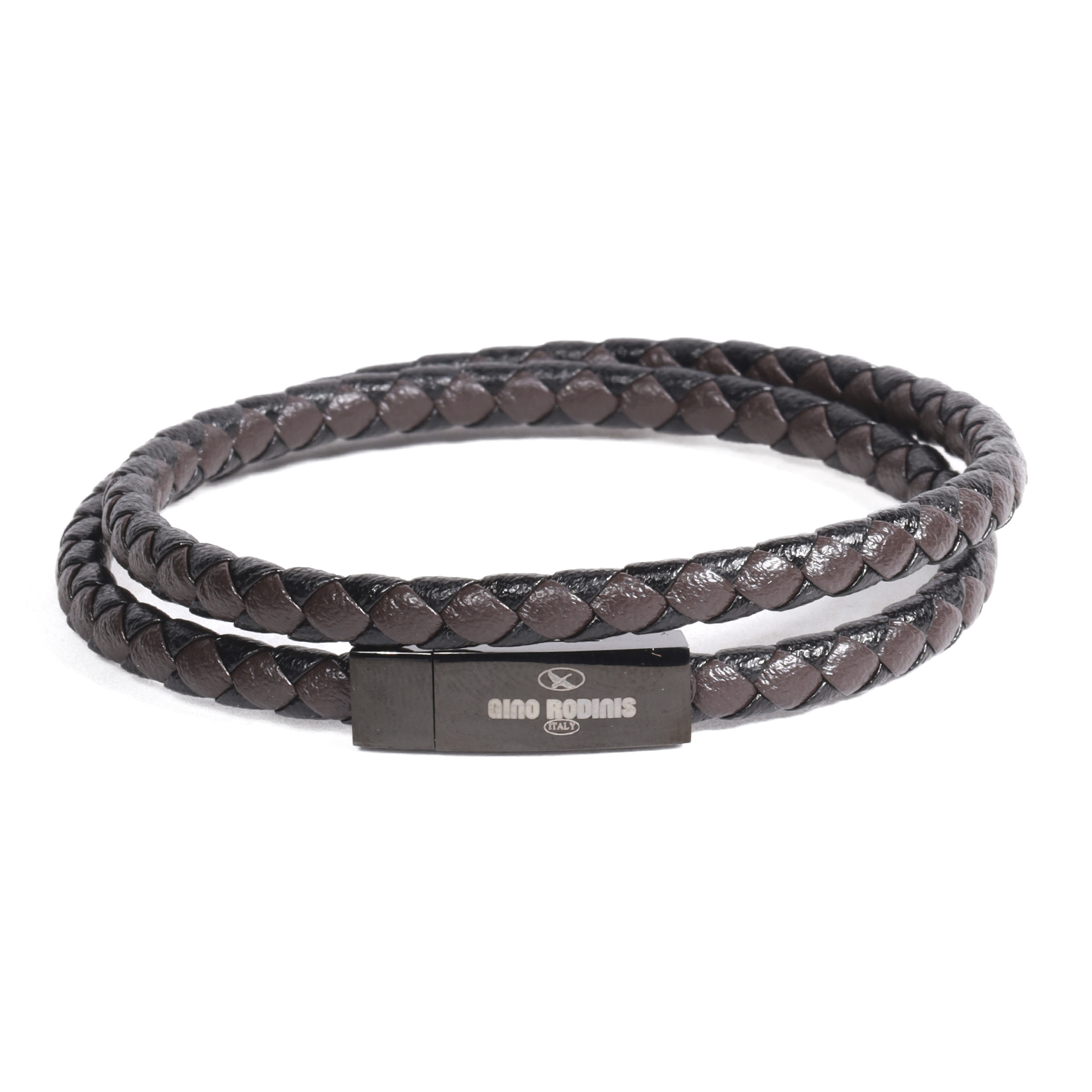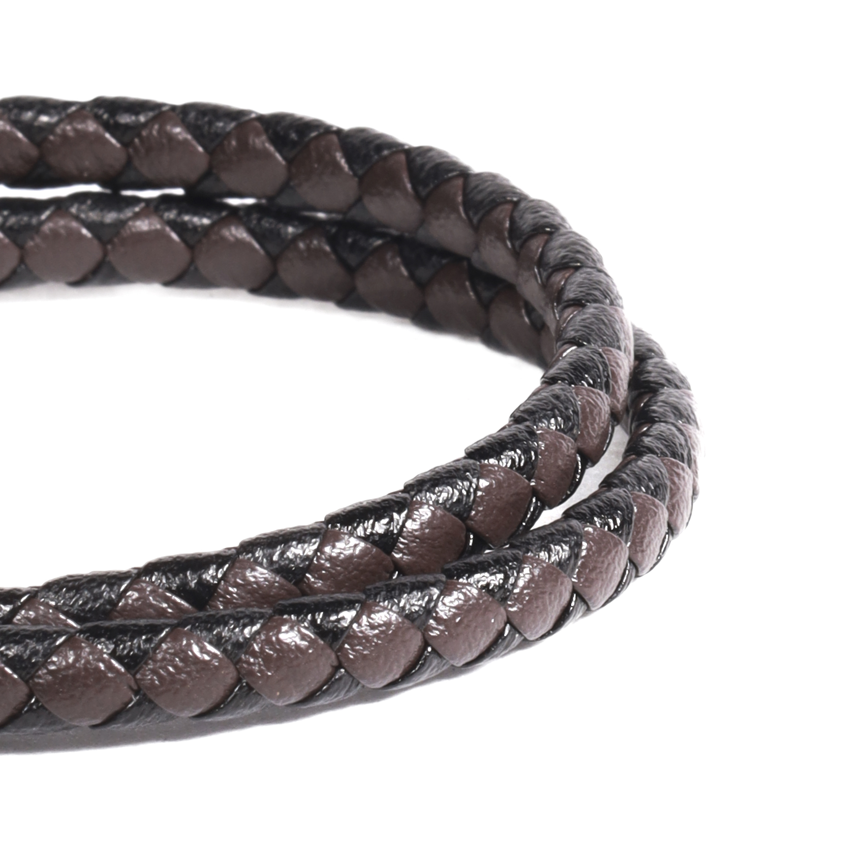 BRAZALETE DE DOS VUELTAS, CON TEJIDO TRENZADO EN TONO CAFÉ Y NEGRO, CIERRE IMANTADO