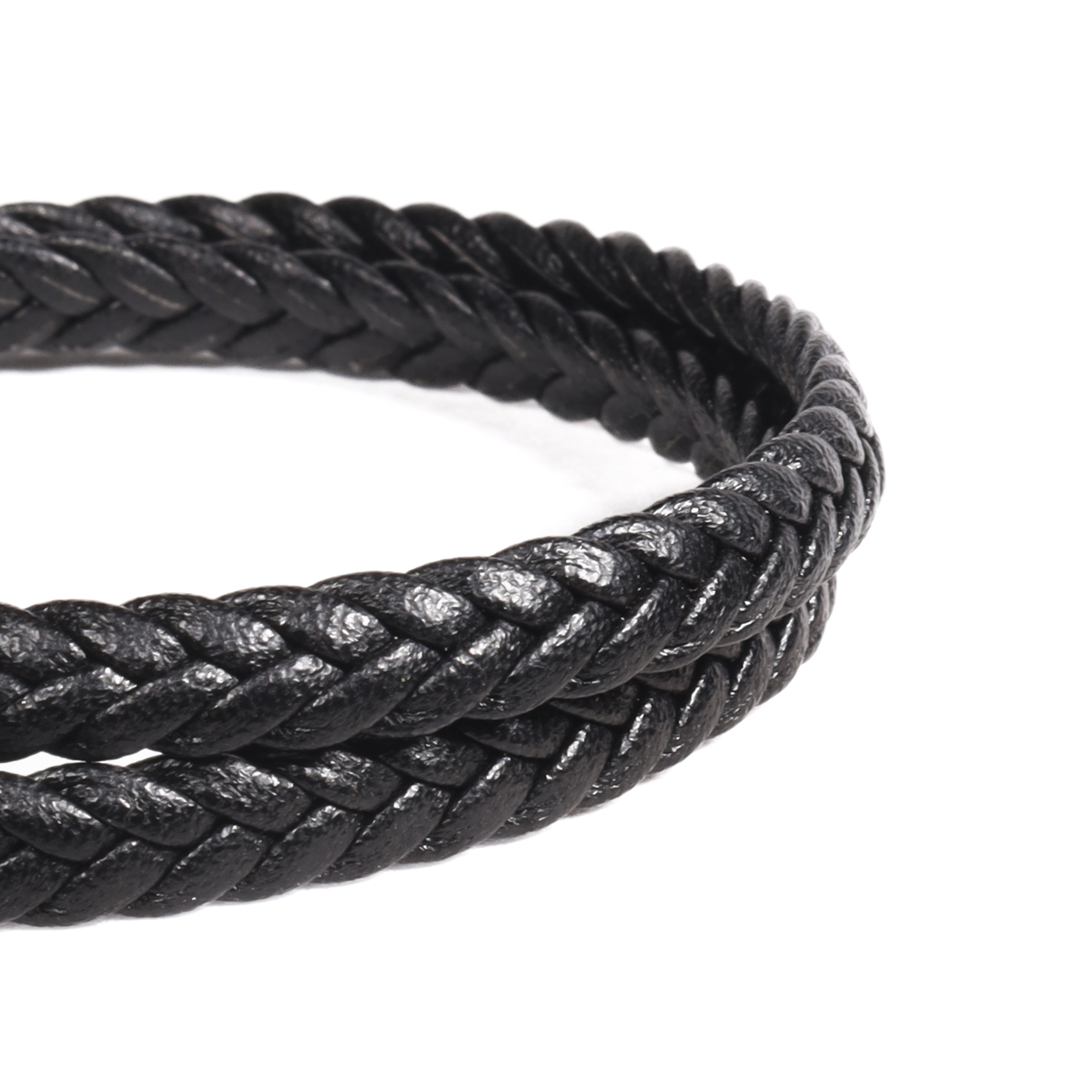BRAZALETE DE DOS VUELTAS, ECO-CUERO TRENZADO PLANO CON CIERRE METÁLICO IMANTADO