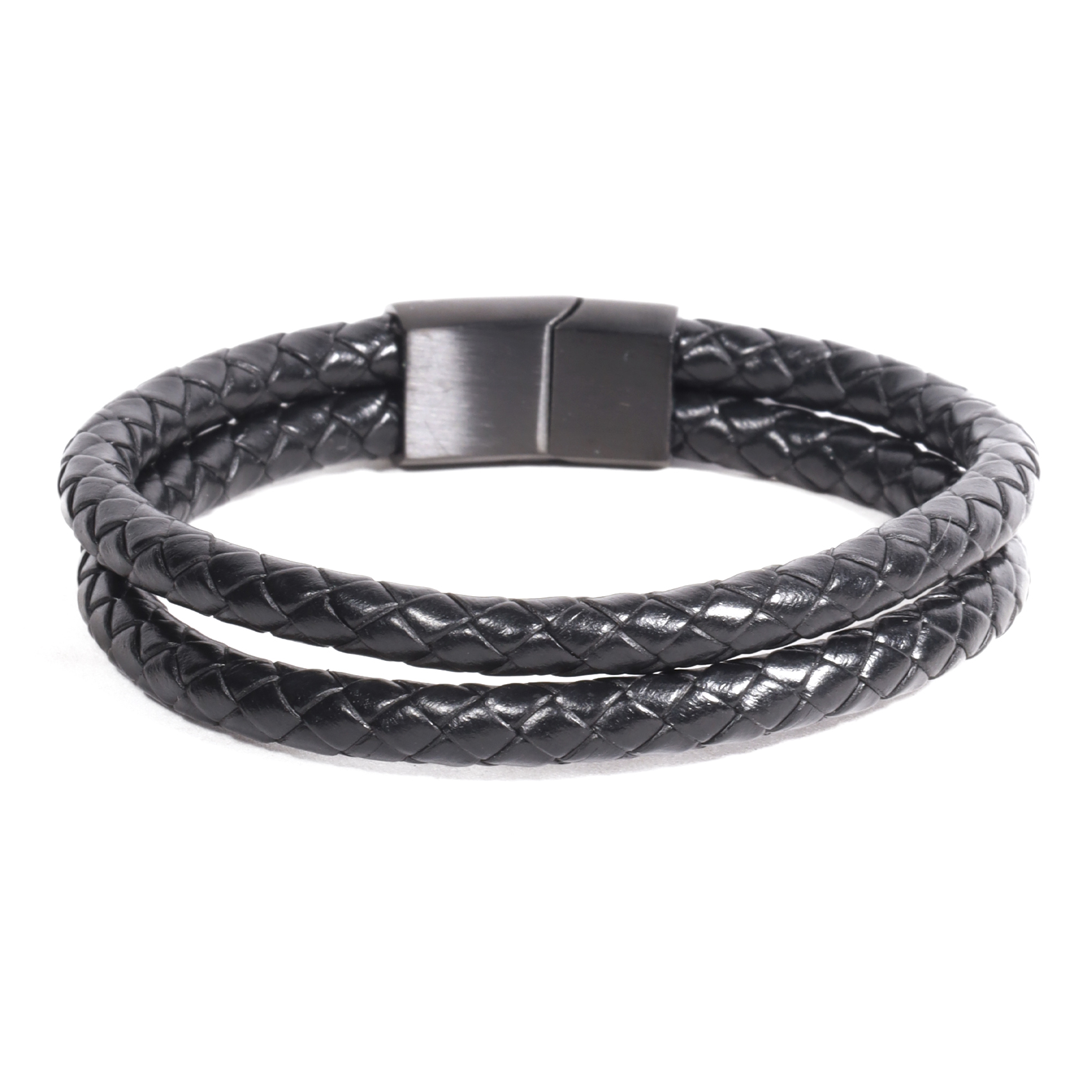 BRAZALETE DE DOS PIEZAS, ECO-CUERO TRENZADO Y TUBULAR CON CIERRE METÁLICO