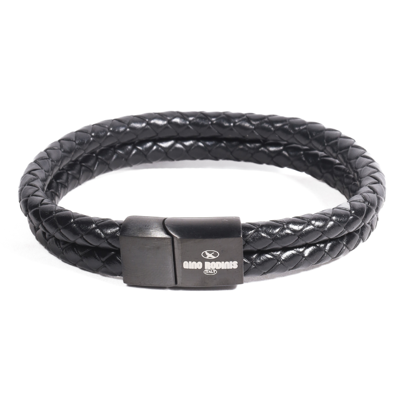 - Brazalete de eco-cuero, compuesto de dos cintas tubulares trenzadas.