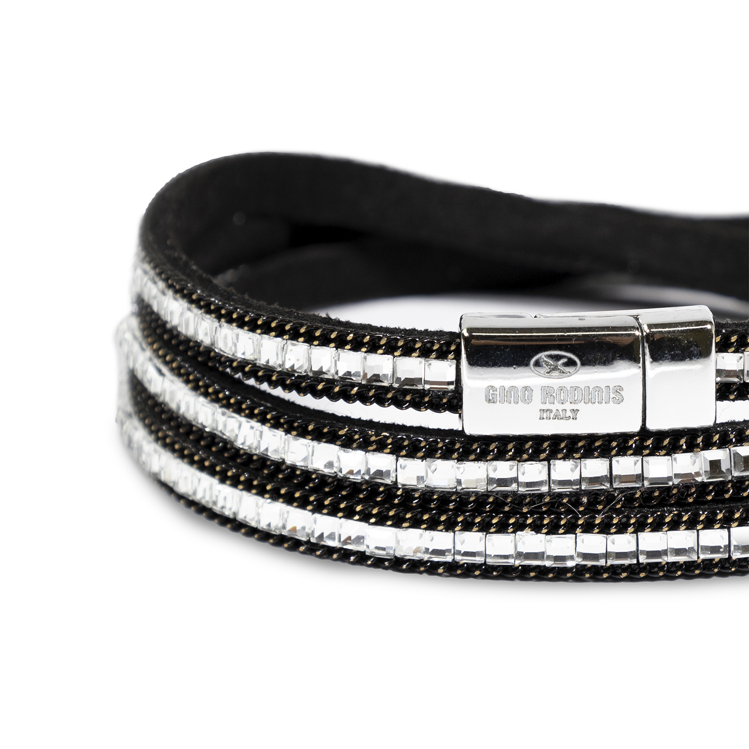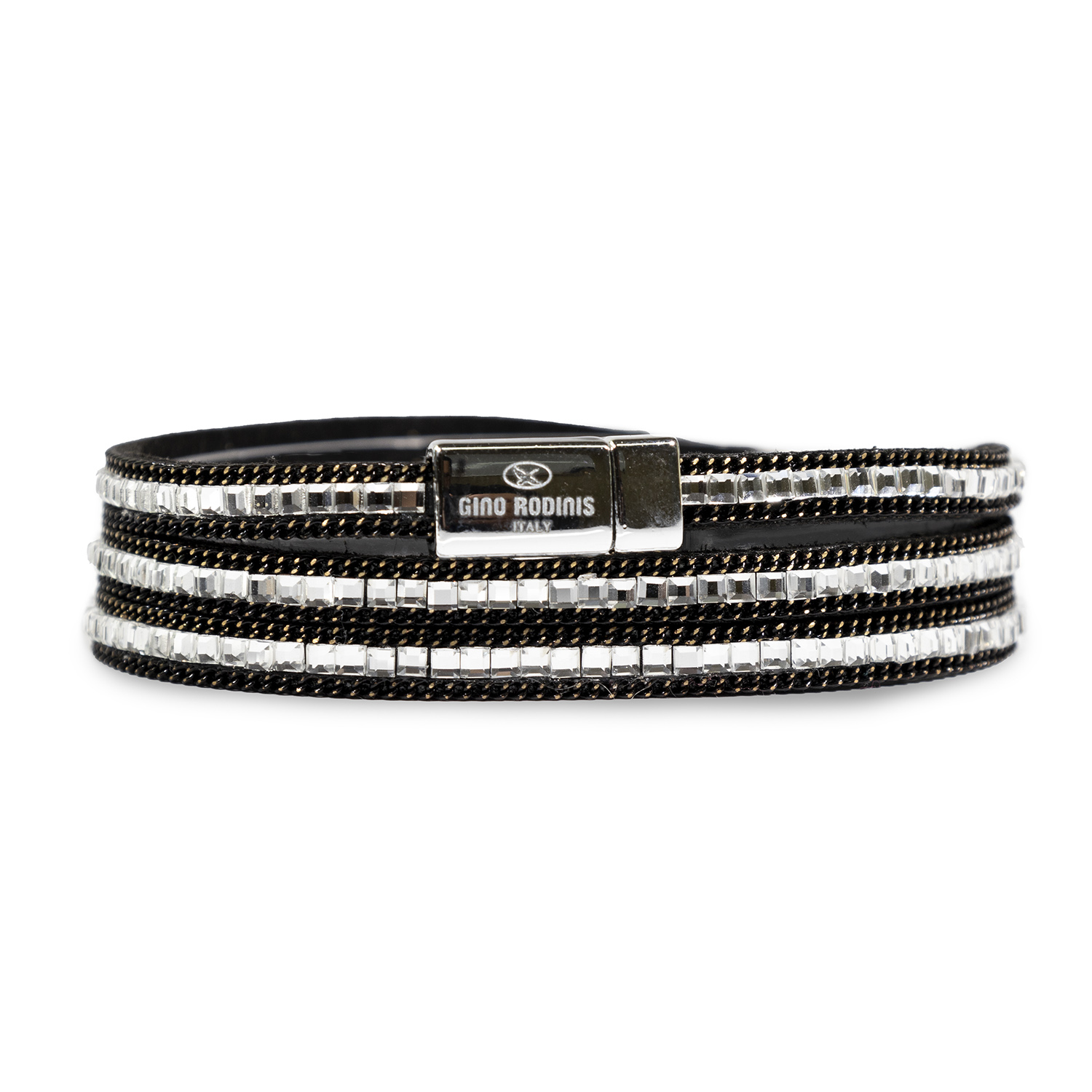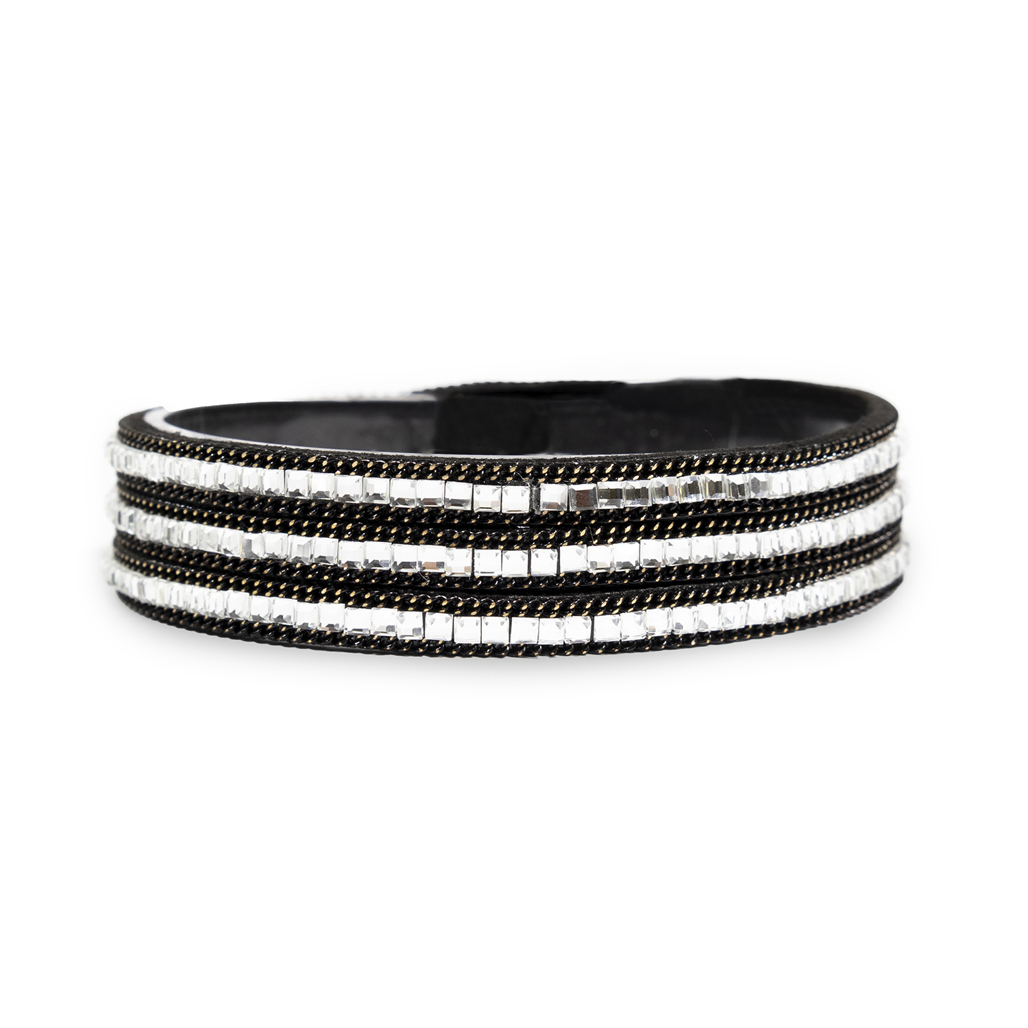 - Brazalete de 3 vueltas compuesto de una cinta plana, única, con estrás plateados