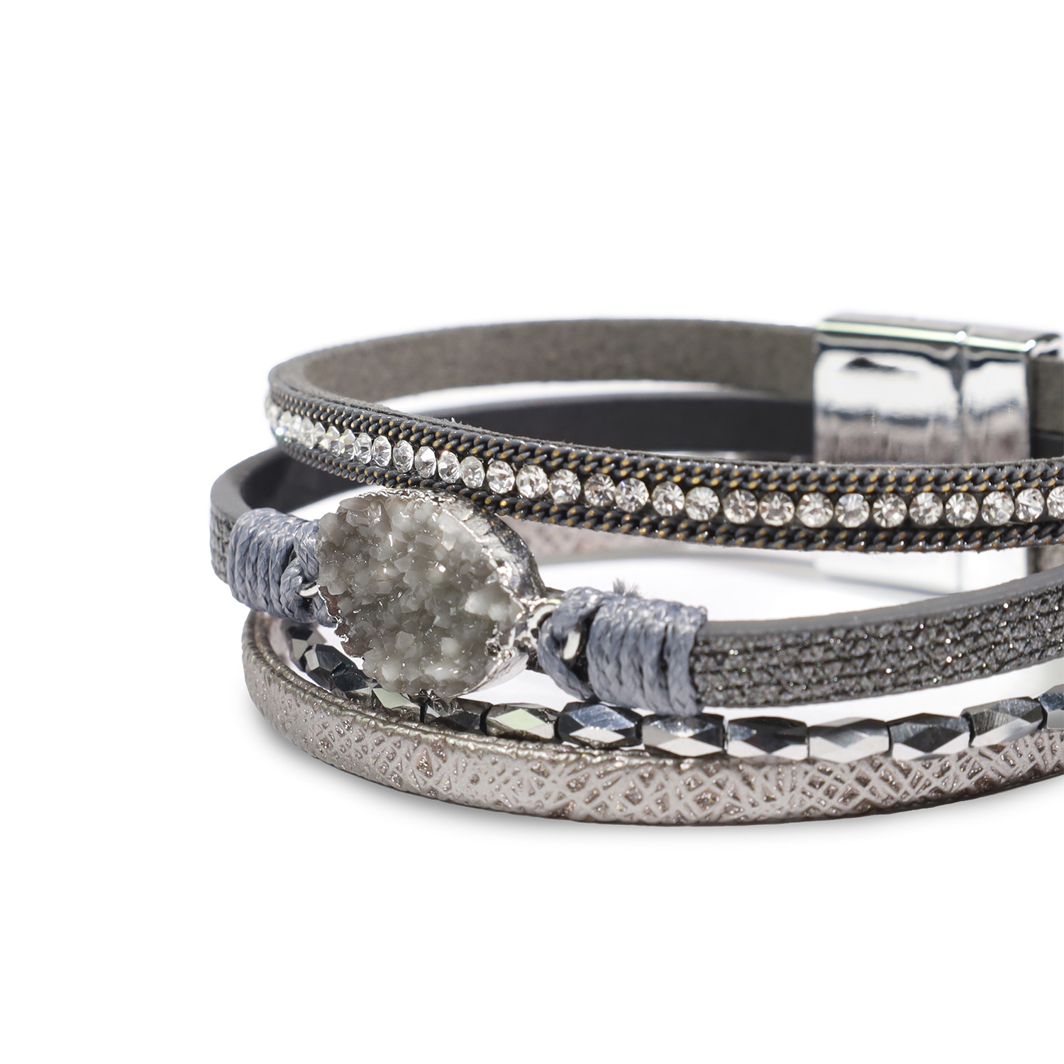 - Brazalete compuesto de 4 cintas de diferentes formas, texturas y brillos