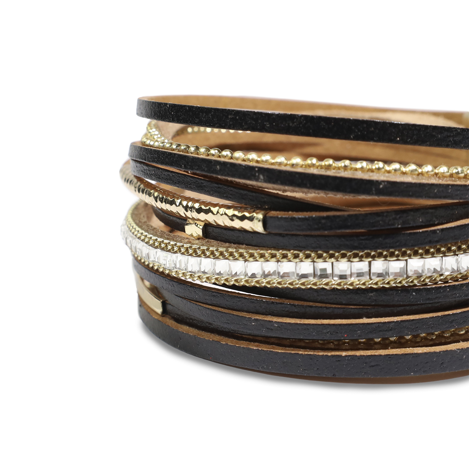 BRAZALETE DE MUJER COMPUESTO DE MÚLTIPLES CINTAS DE COLOR NEGRO