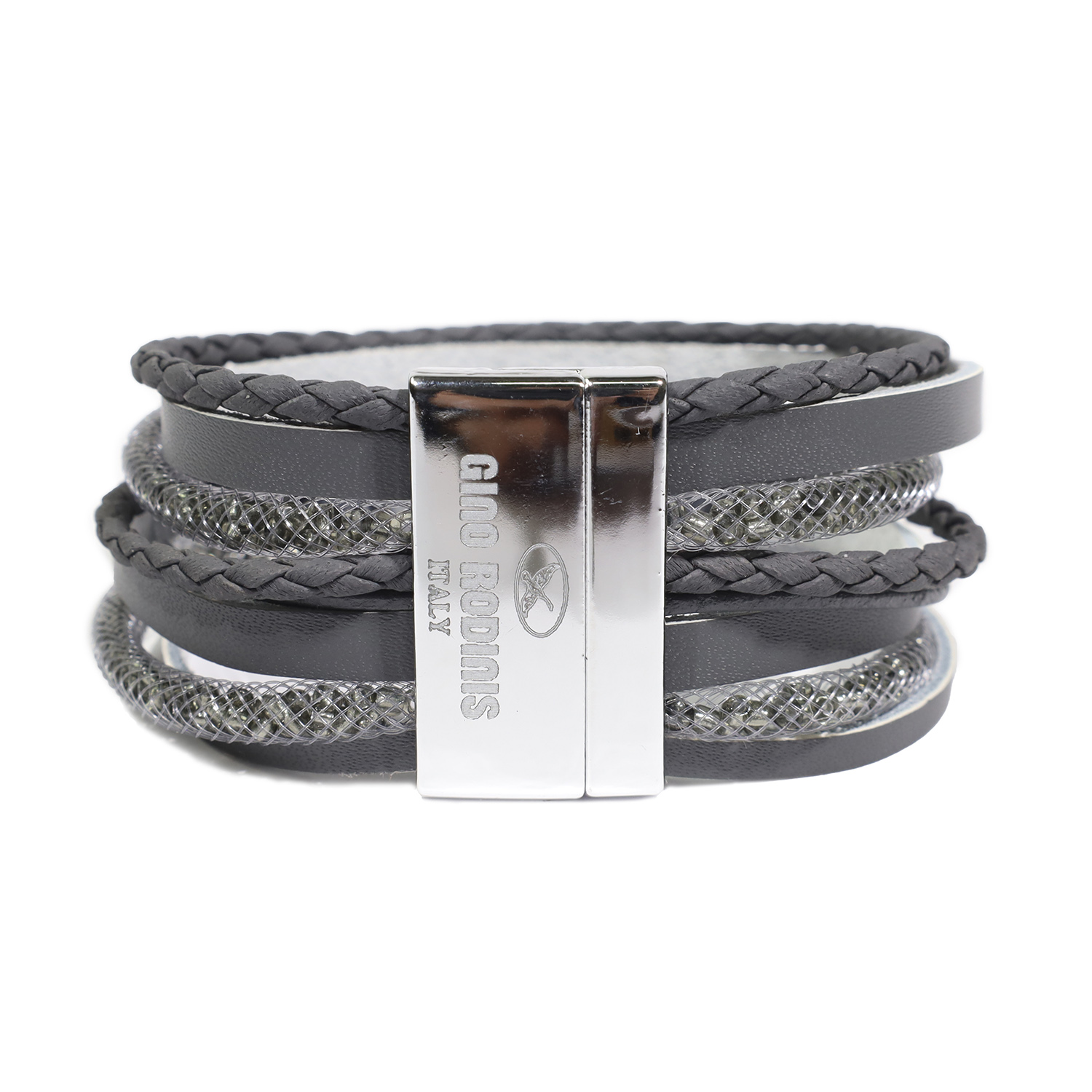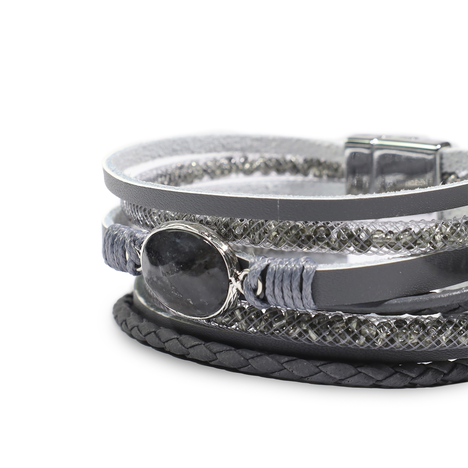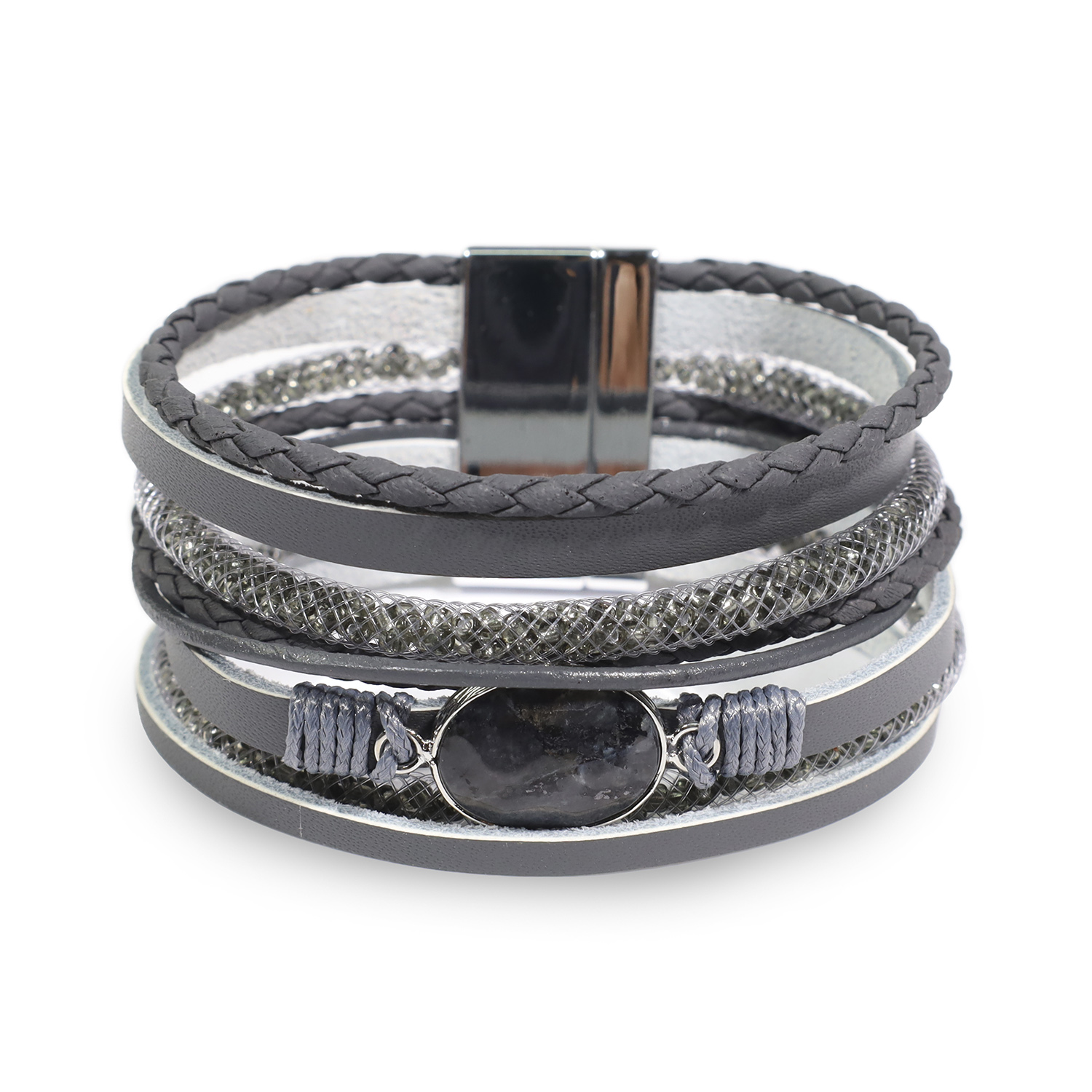BRAZALETE DE MUJER DE OCHO CINTAS, CON PIEDRA CENTRAL GRIS