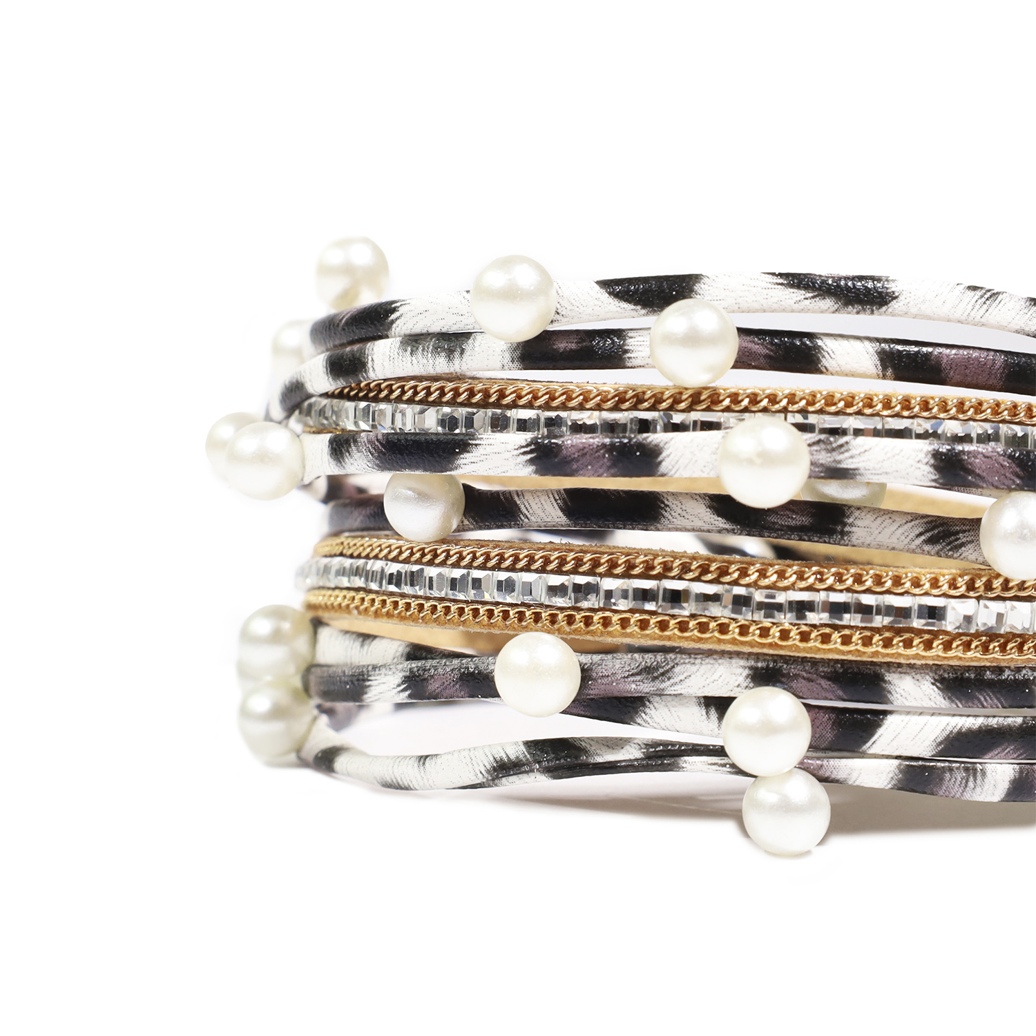 BRAZALETE DE MUJER DE DOS VUELTAS, ANIMAL PRINT, CON MÚLTIPLES PERLAS