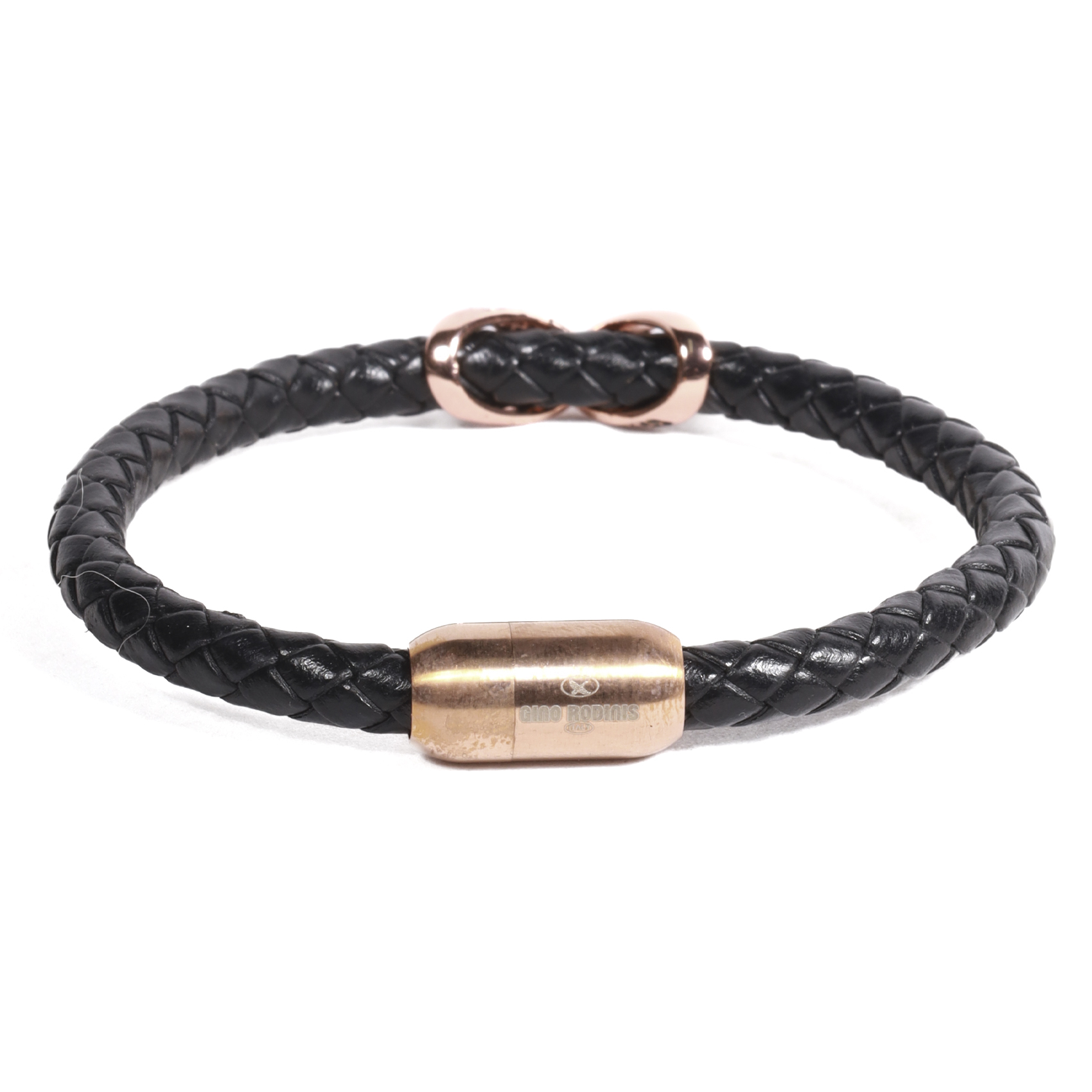 BRAZALETE TUBULAR DE ECO-CUERO CON SÍMBOLO DEL INFINITO EN COLOR DORADO, CIERRE IMANTADO