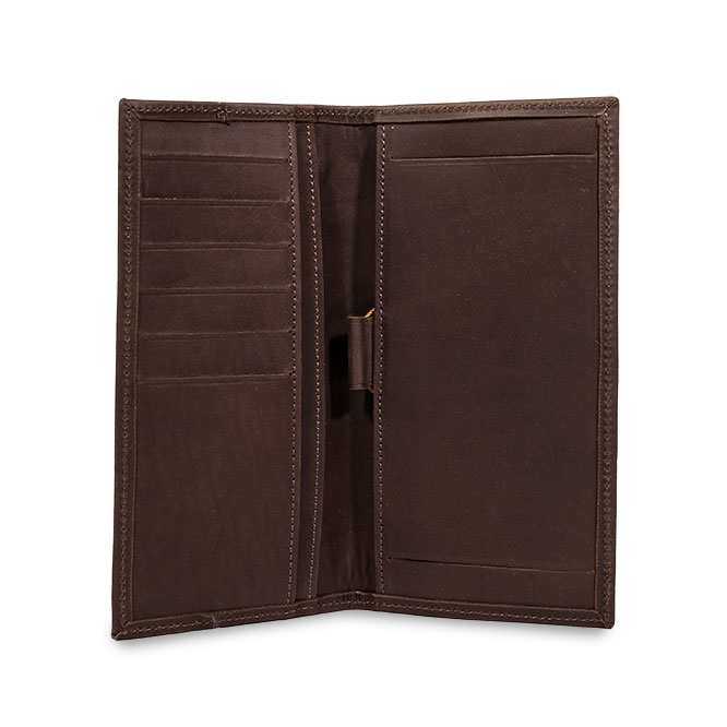 - Chequera confeccionada en cuero graso.