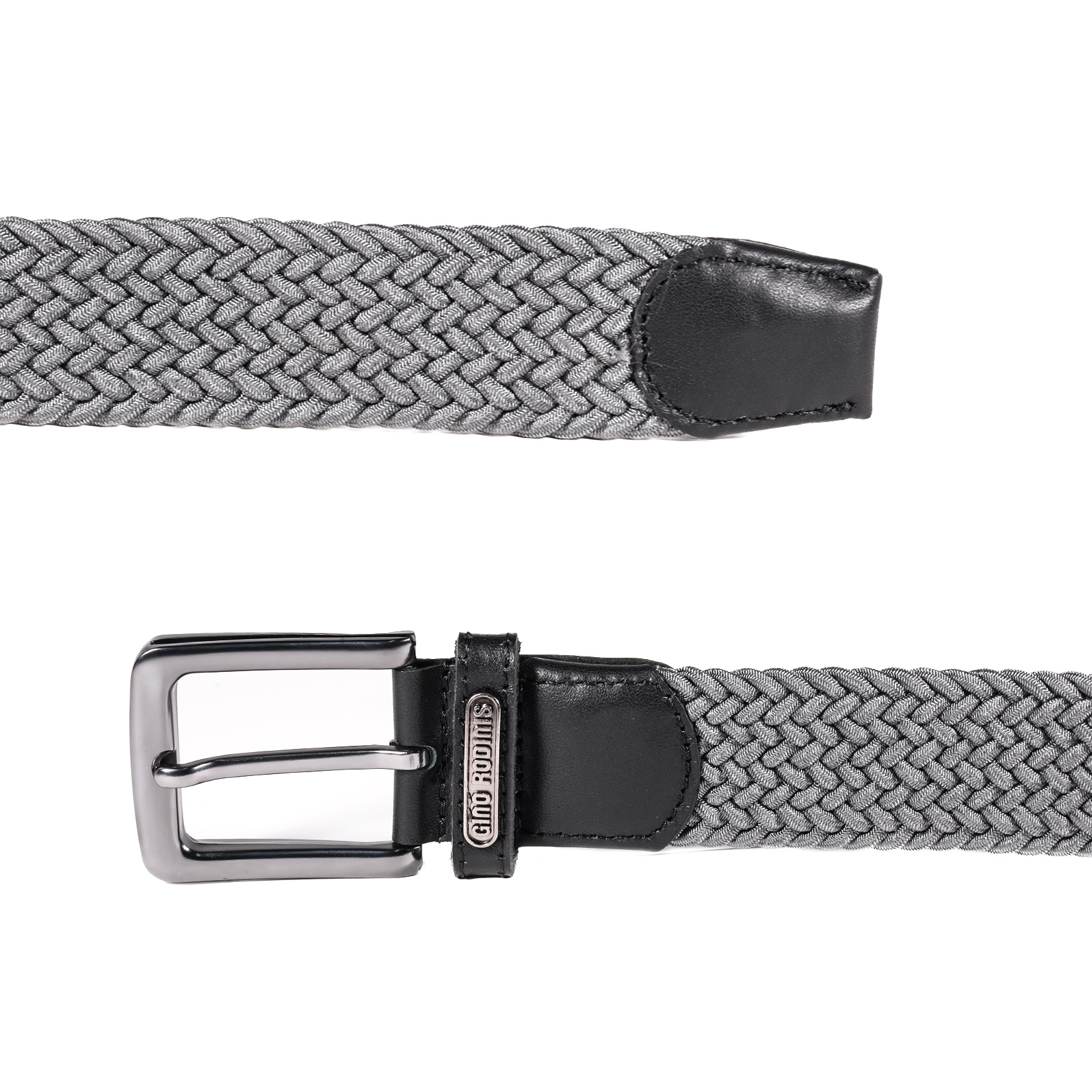 CINTURÓN CONFECCIONADO EN TEJIDO ELASTICADO CON PUNTERA DE CUERO