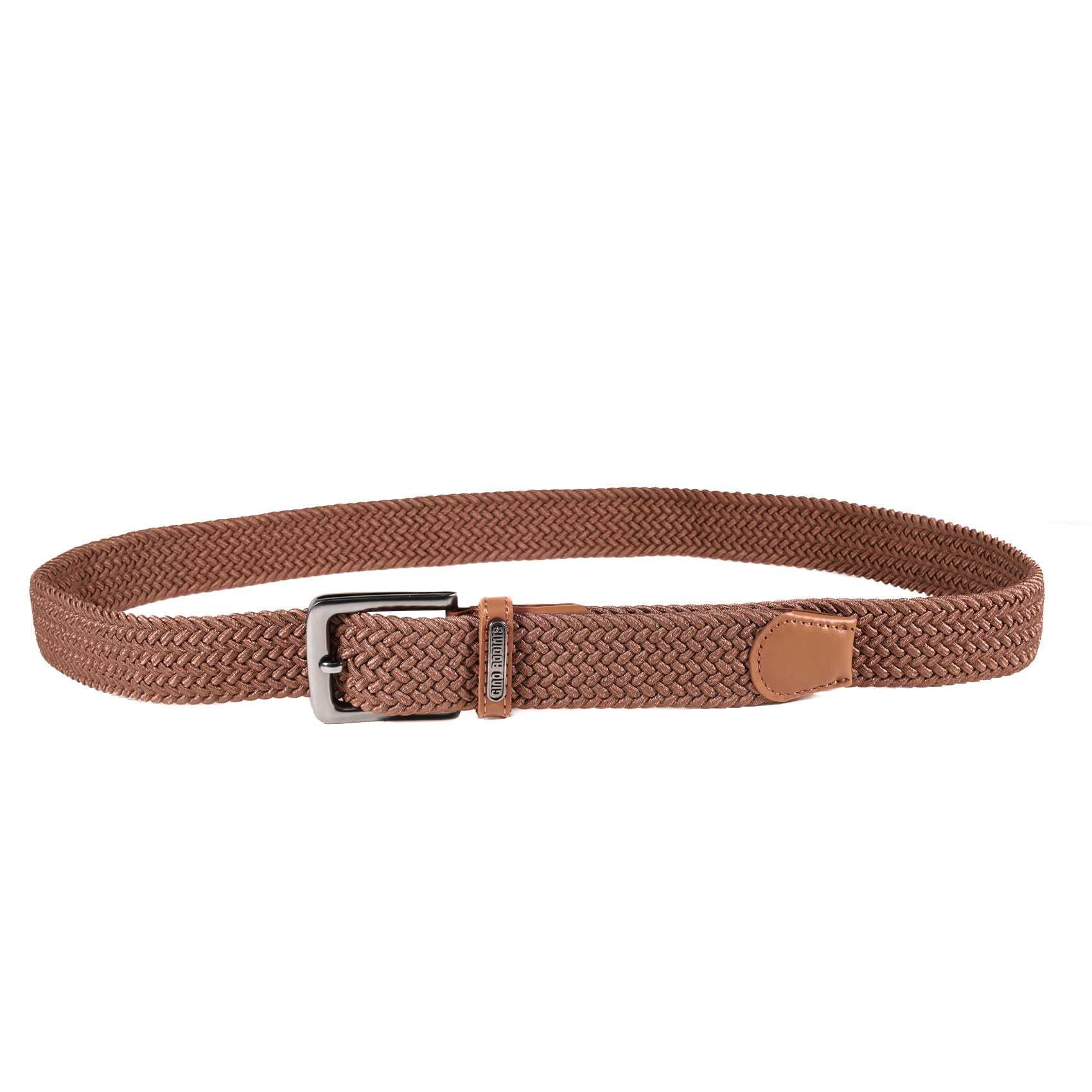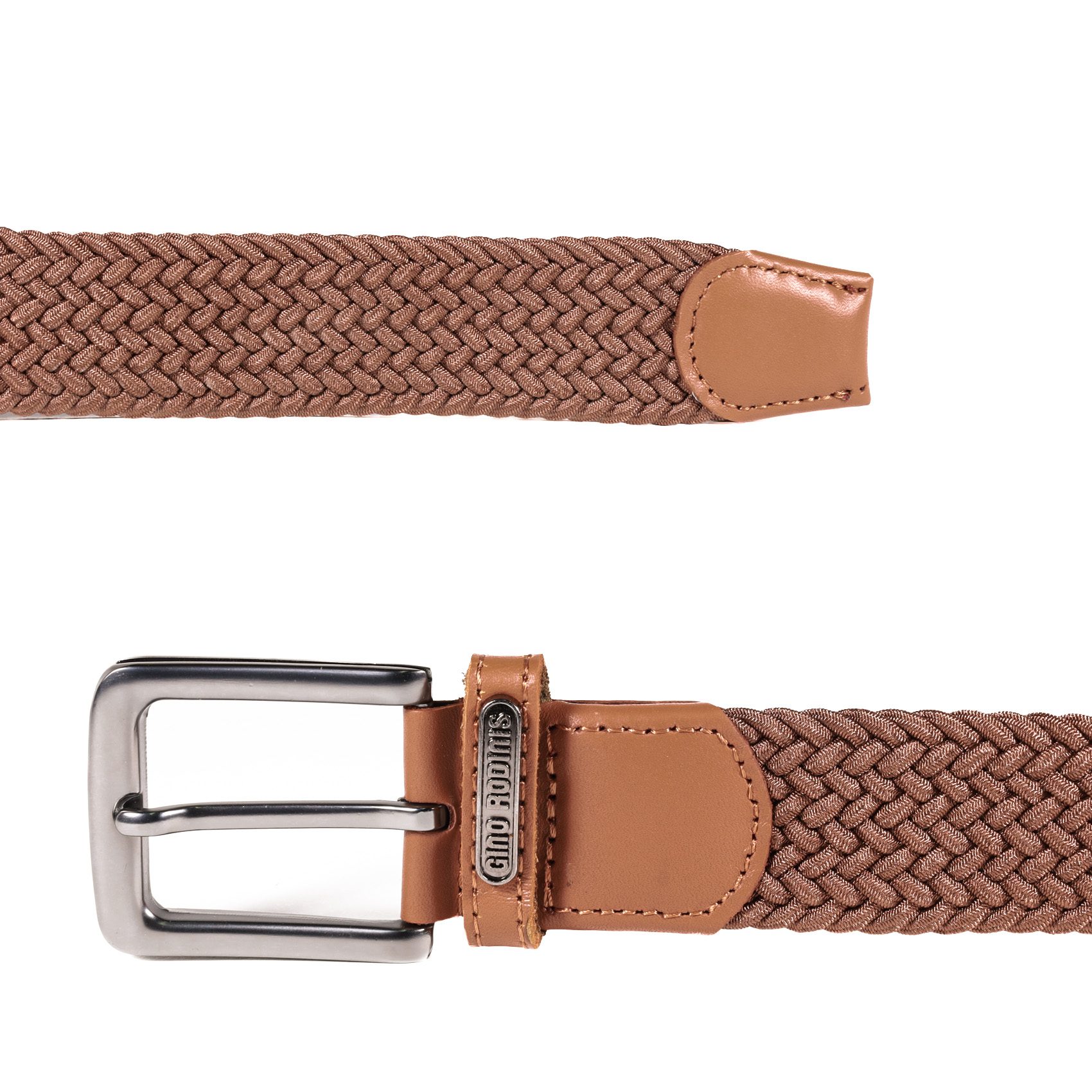 CINTURÓN CONFECCIONADO EN TEJIDO ELASTICADO CON PUNTERA DE CUERO