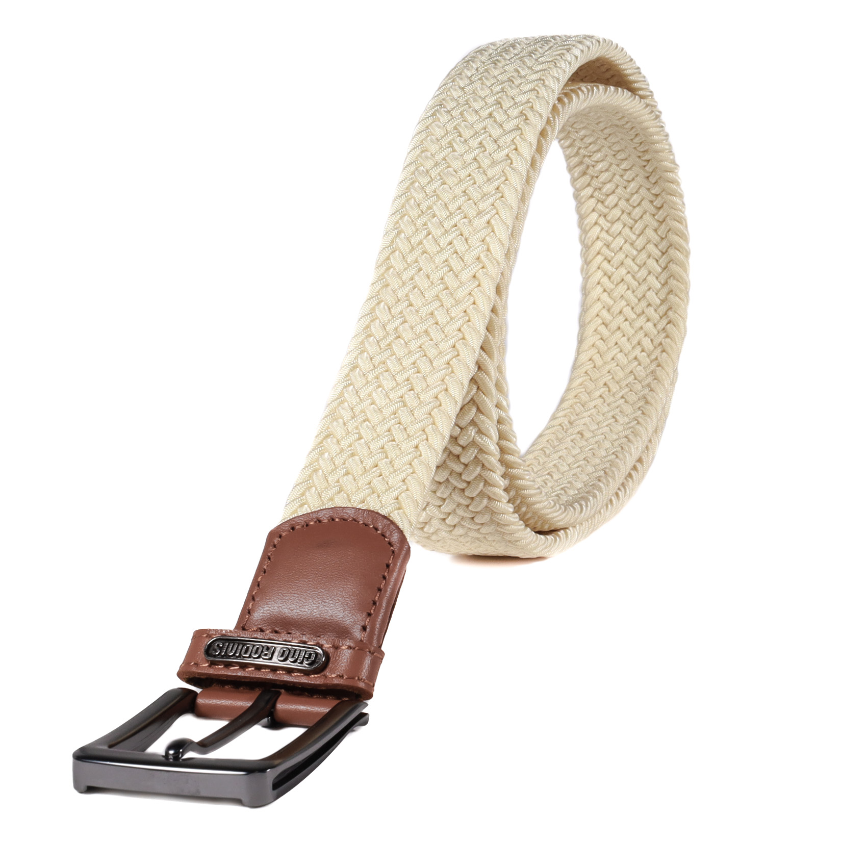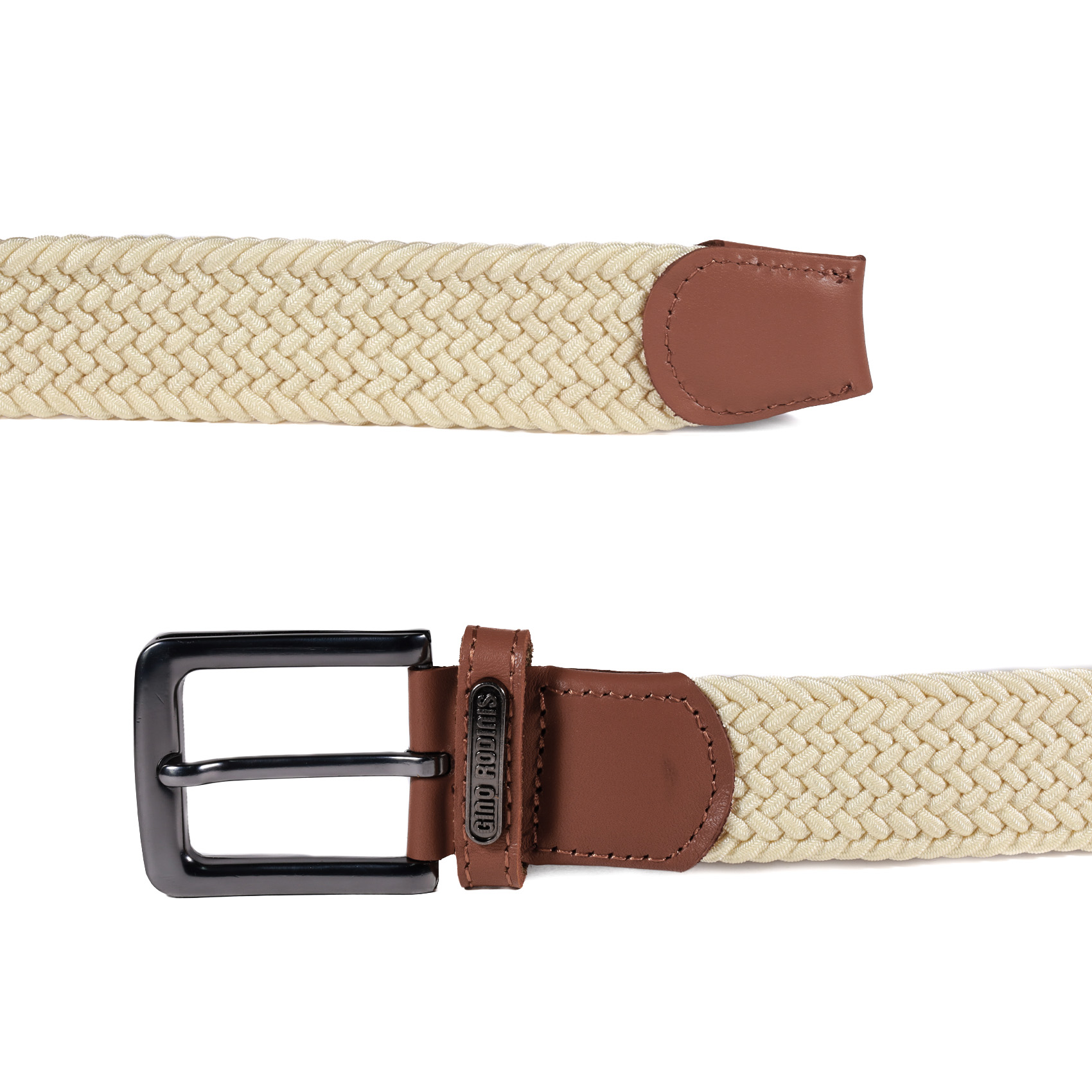 CINTURÓN CONFECCIONADO EN TEJIDO ELASTICADO CON PUNTERA DE CUERO