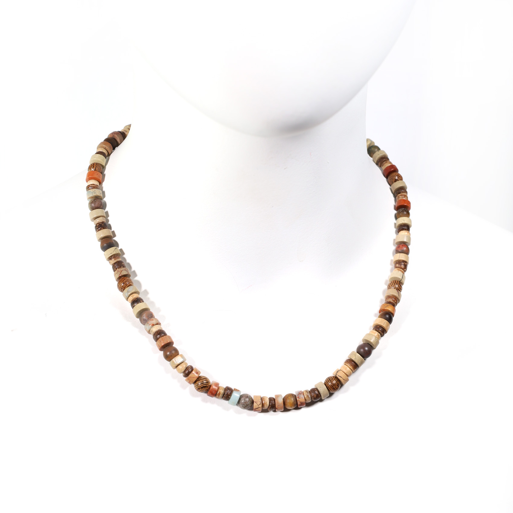 - Collar de cuencas redondas, planas, con pequeñas bolas de madera