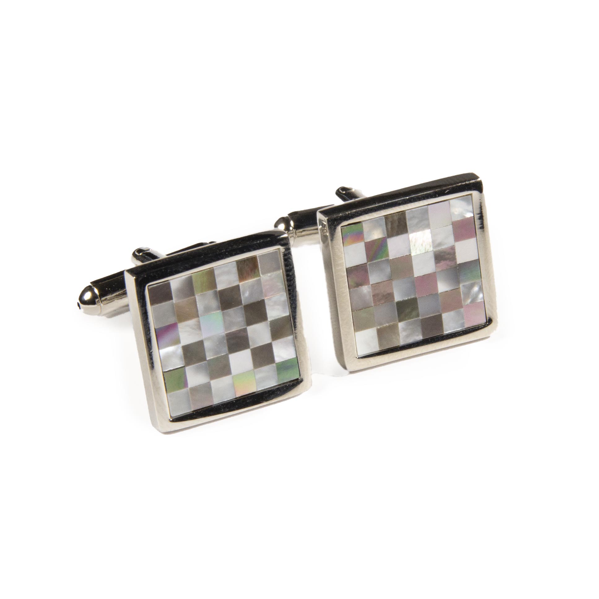 - Piezas cuadradas, con mini piedras en tornasol blancas – plateadas.