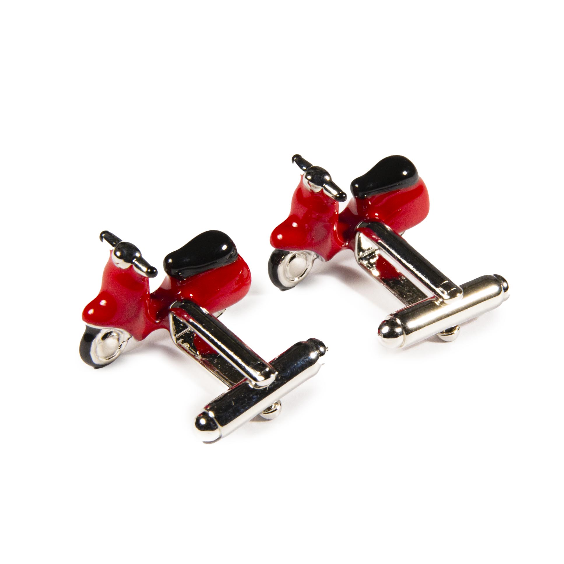 - Diseño vintage de motocicleta Vespa, esmaltada en colores rojo y negro.