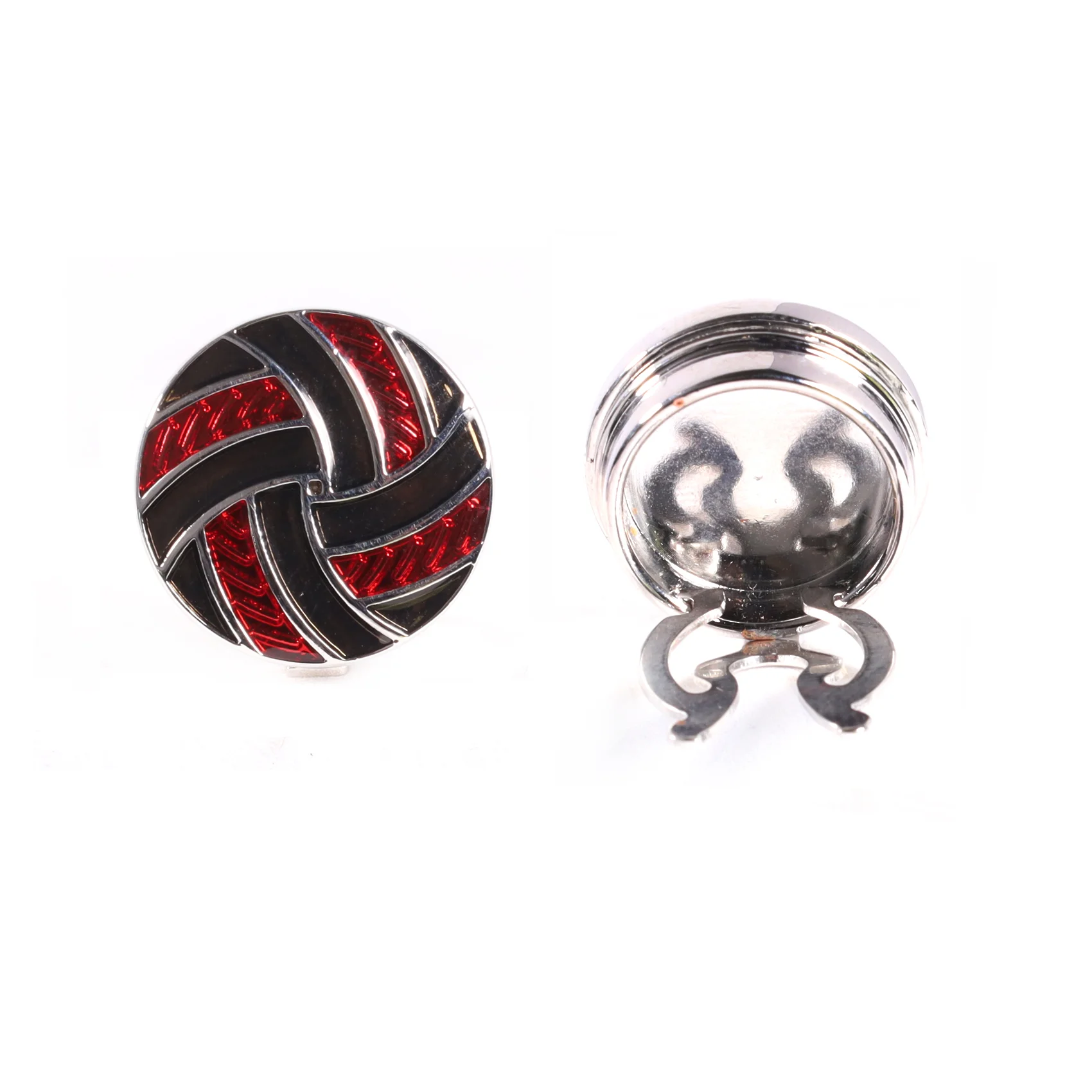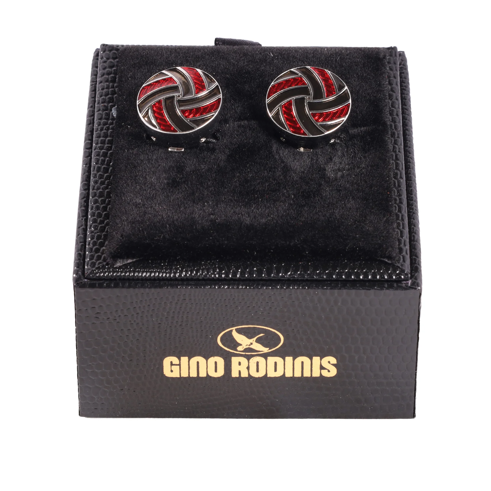CUBRE BOTONES REDONDO ESMALTADA EN COLORES NEGRO Y ROJO CON RAYAS PLATEADAS