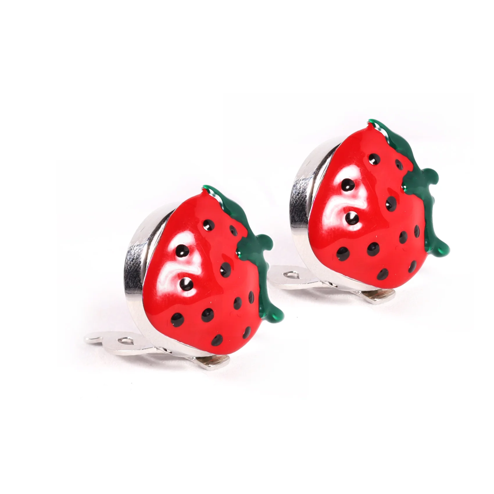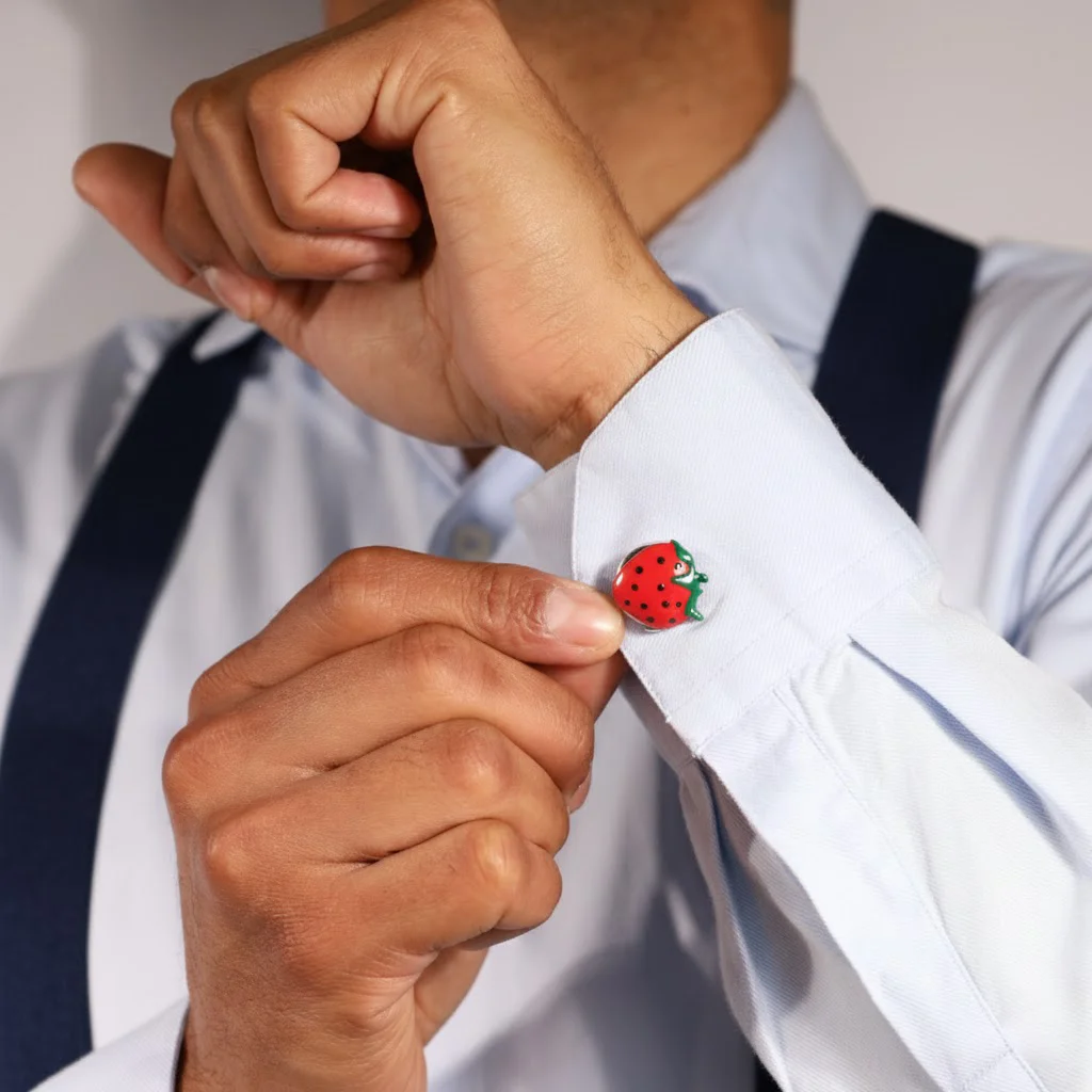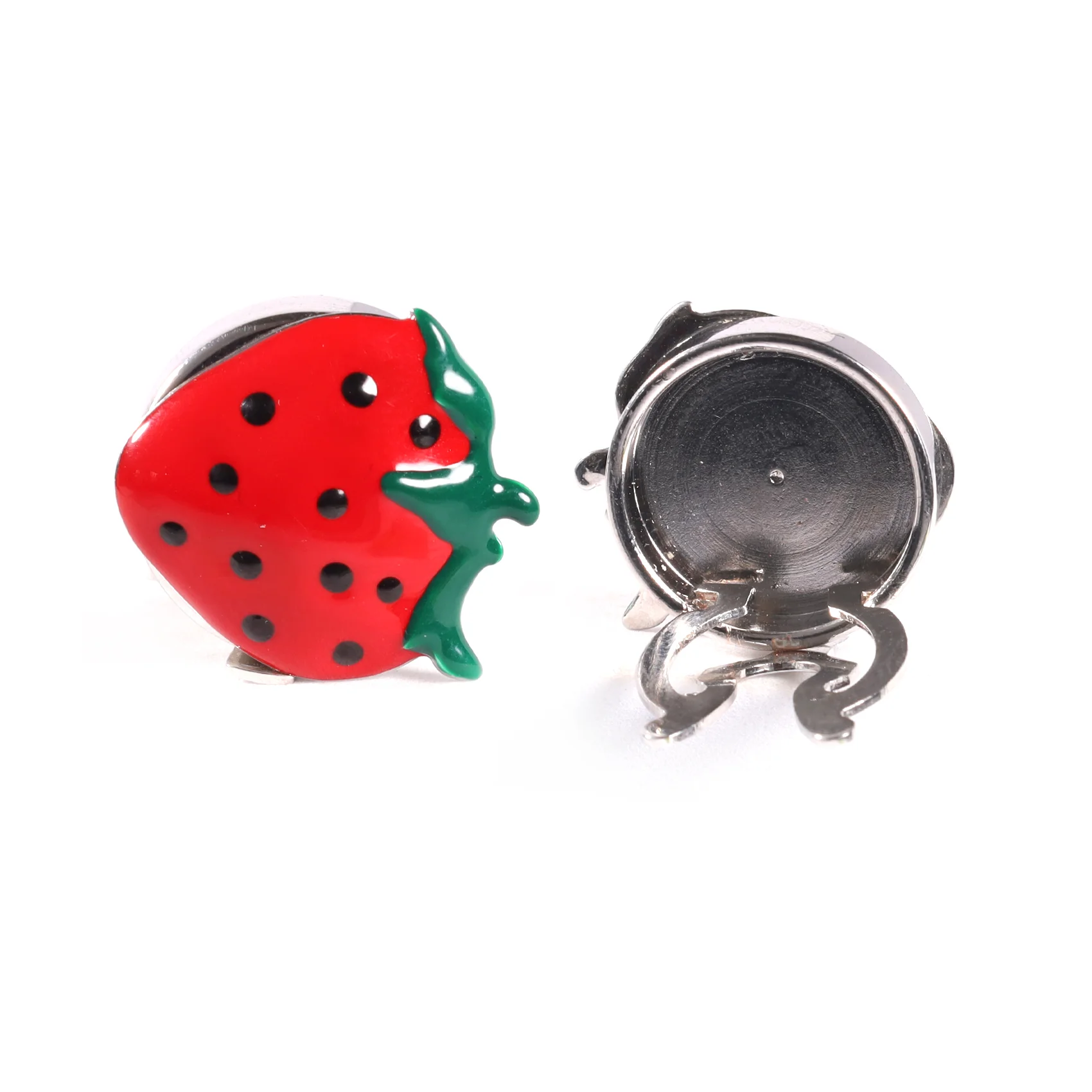 CUBRE BOTONES TRIDIMENSIONAL CON DISEÑO DE FRUTILLA ESMALTADO A TRES COLORES