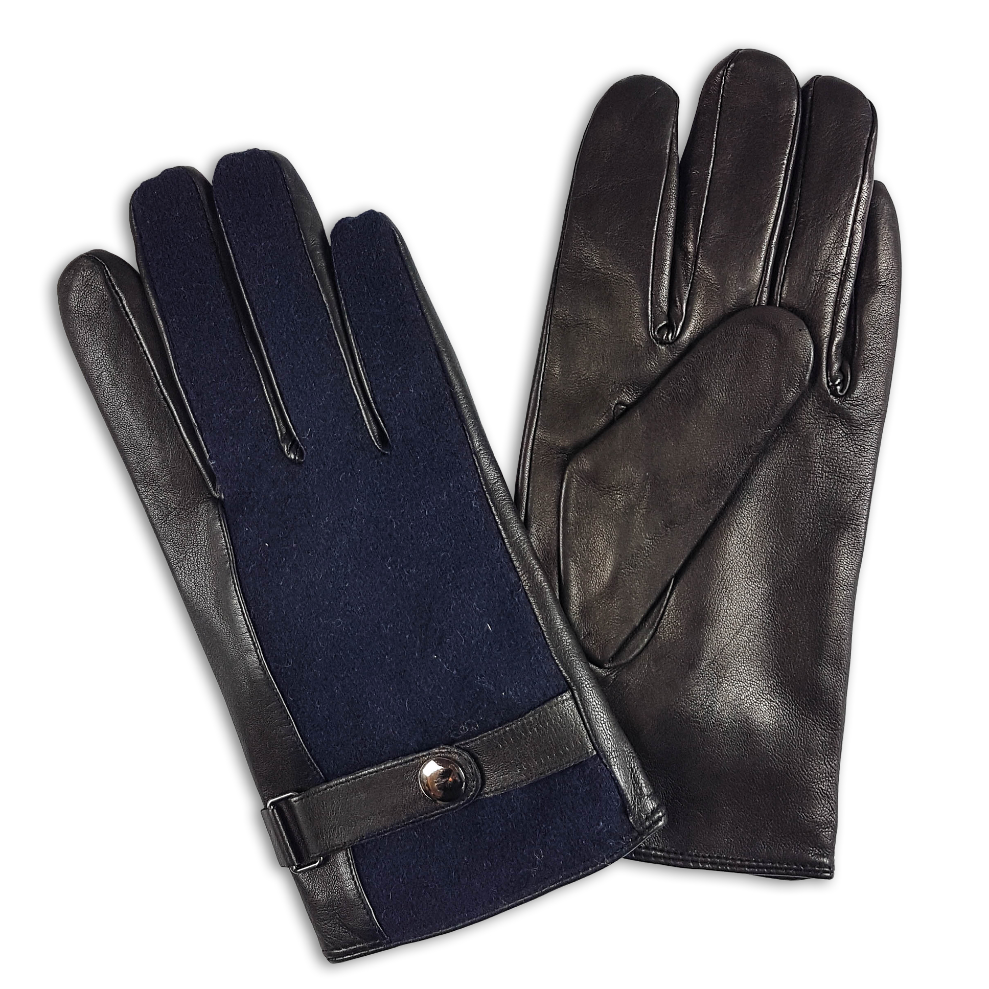 GUANTE CON LATERALES DE CUERO Y PARTE DORSAL DE TELA CON BROCHE A PRESIÓN