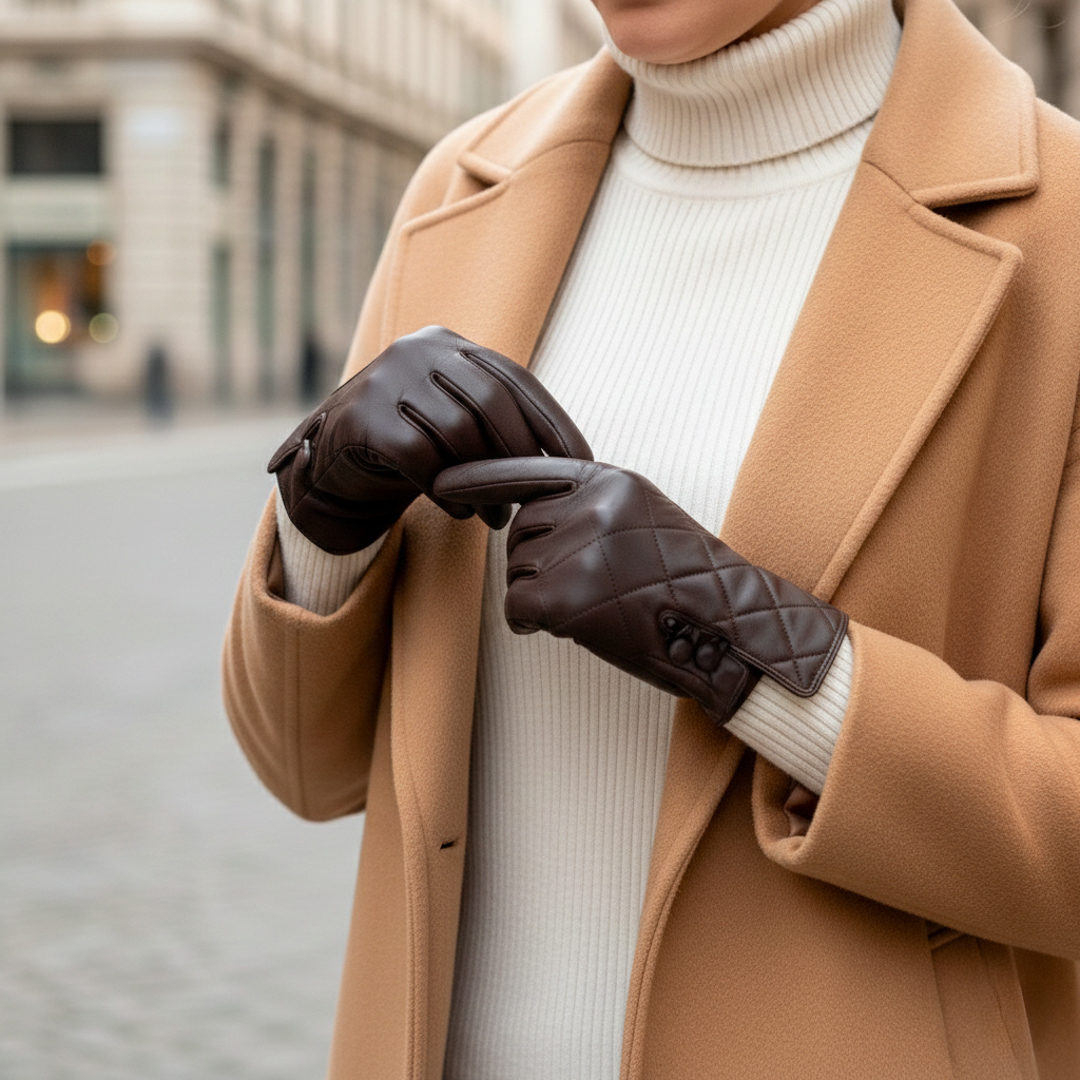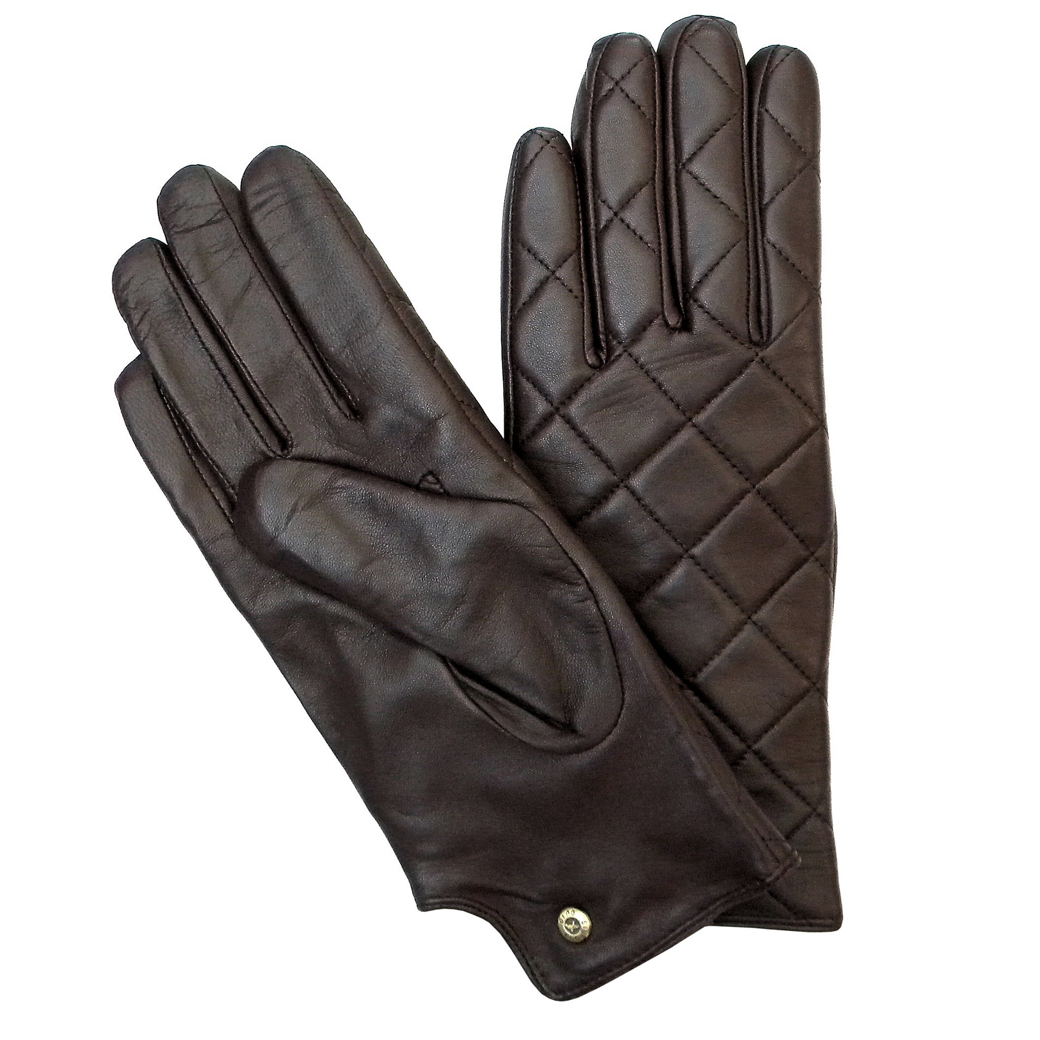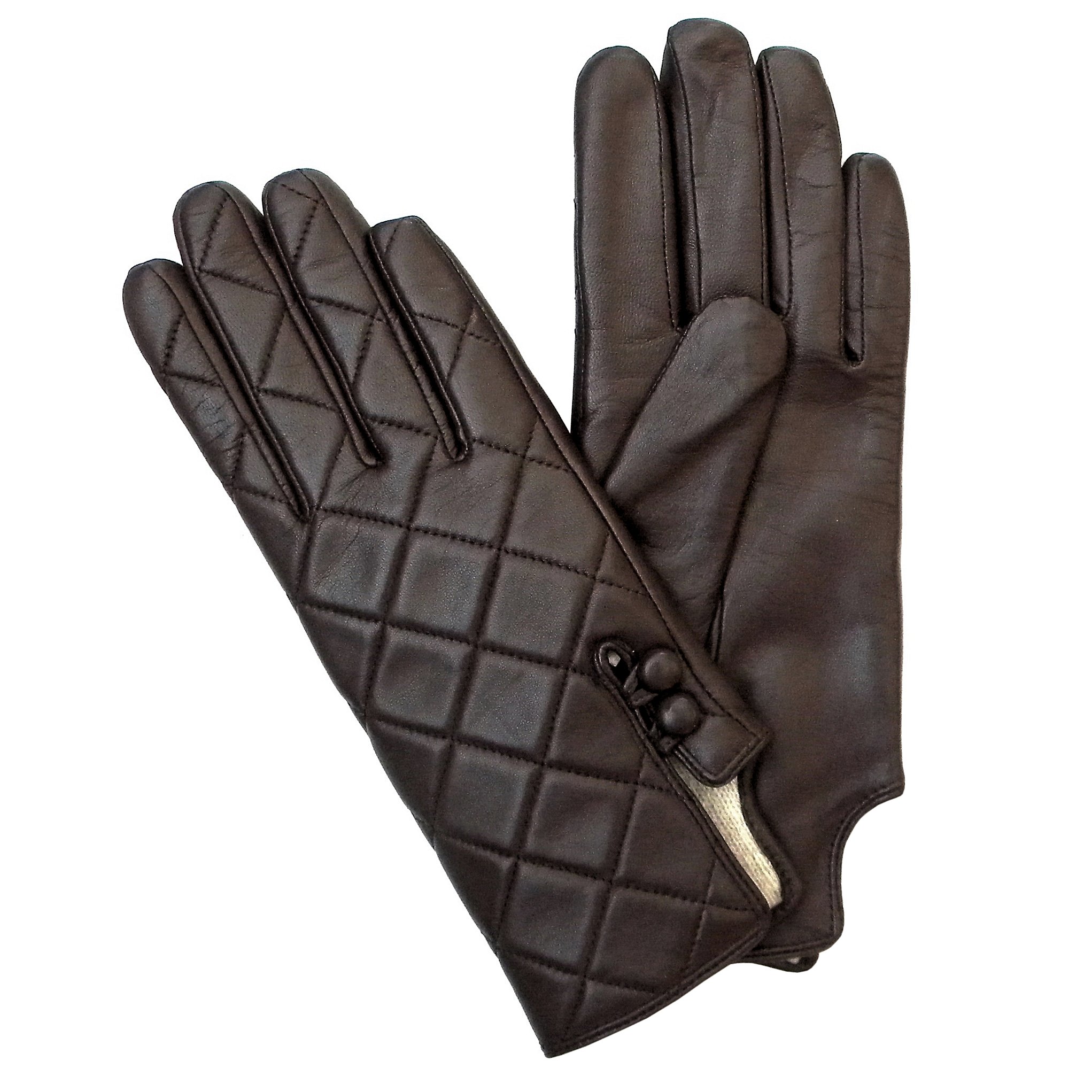 GUANTE DE CUERO MUJER CON COSTURAS EN ROMBOS EN DORSO Y REBAJE DE MUÑECA CON 2 BOTONES