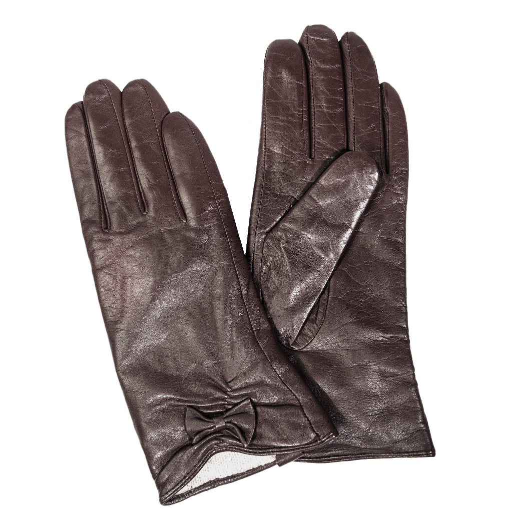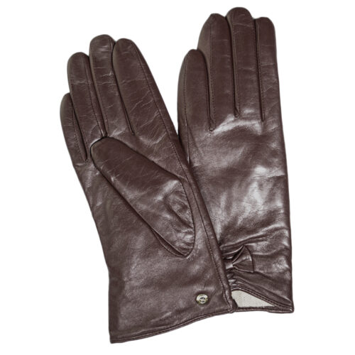 GUANTE DE CUERO MUJER, DISEÑO LISO CON UN MINI CORBATIN EN EL DORSO SUPERIOR