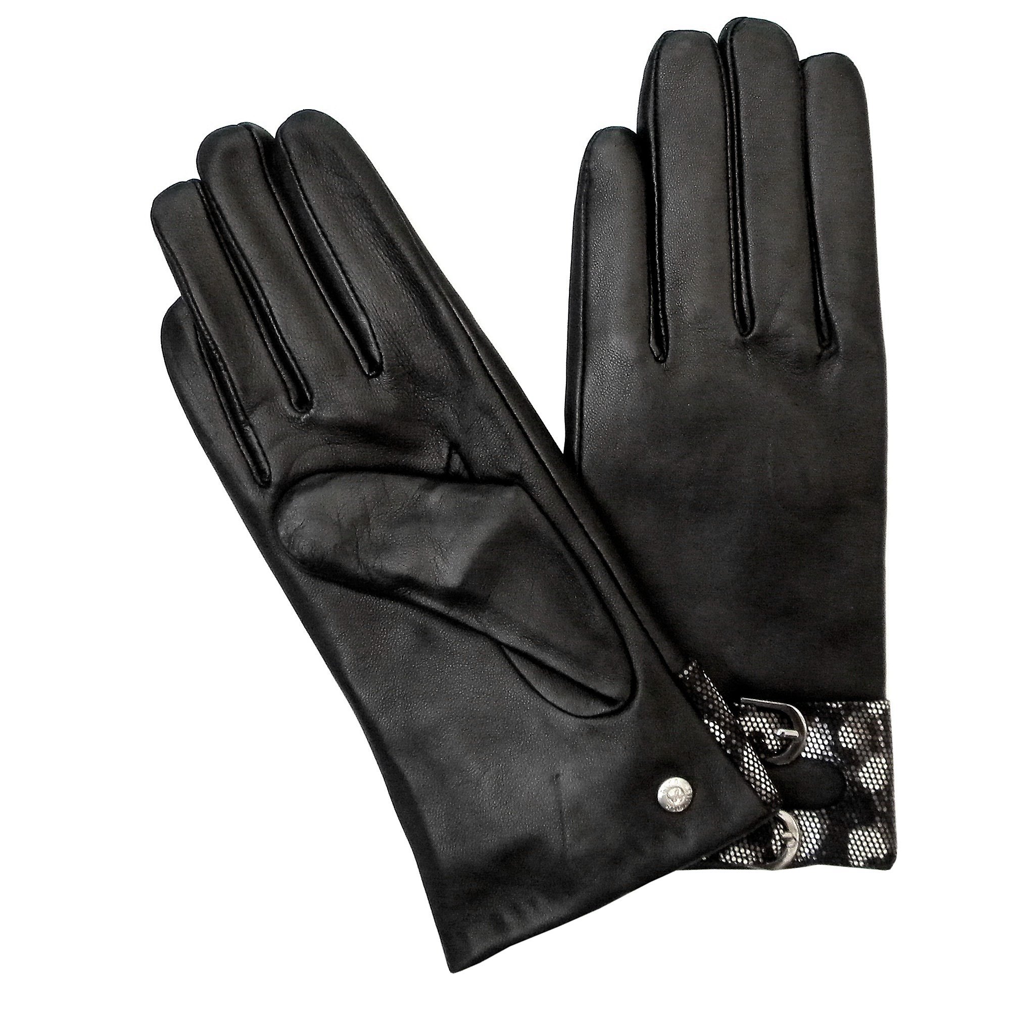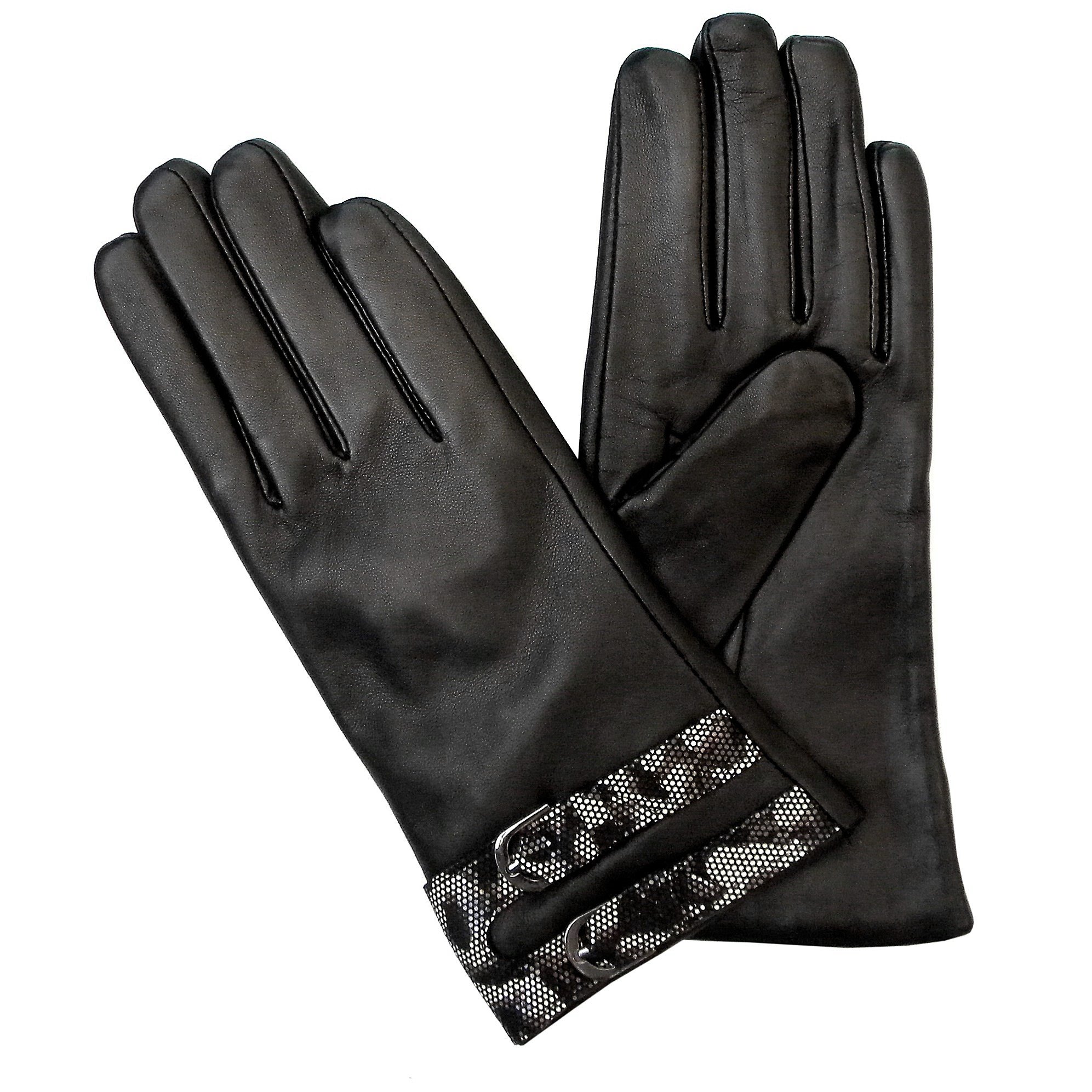 GUANTE DE CUERO MUJER CON ZONA ESTAMPADA EN ANIMAL PRINT Y DOS HEBILLAS