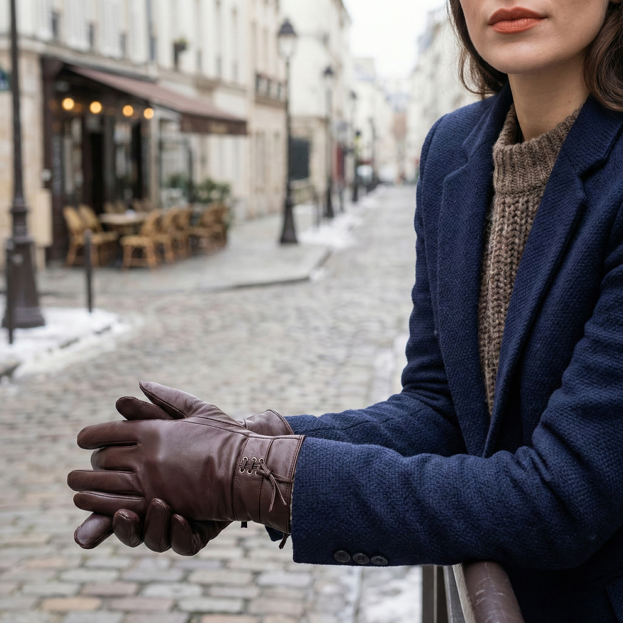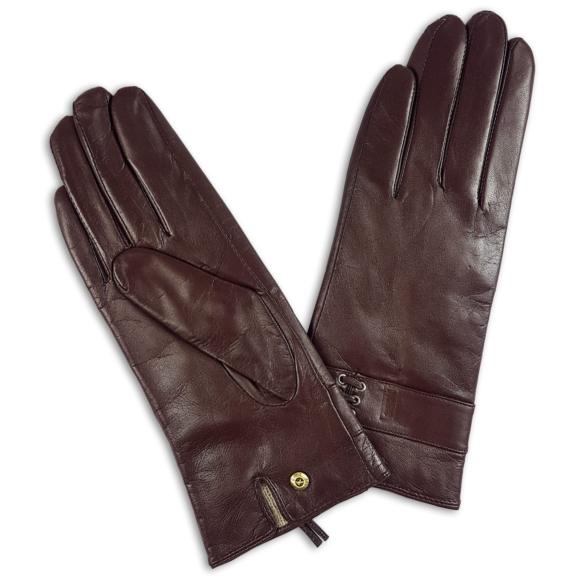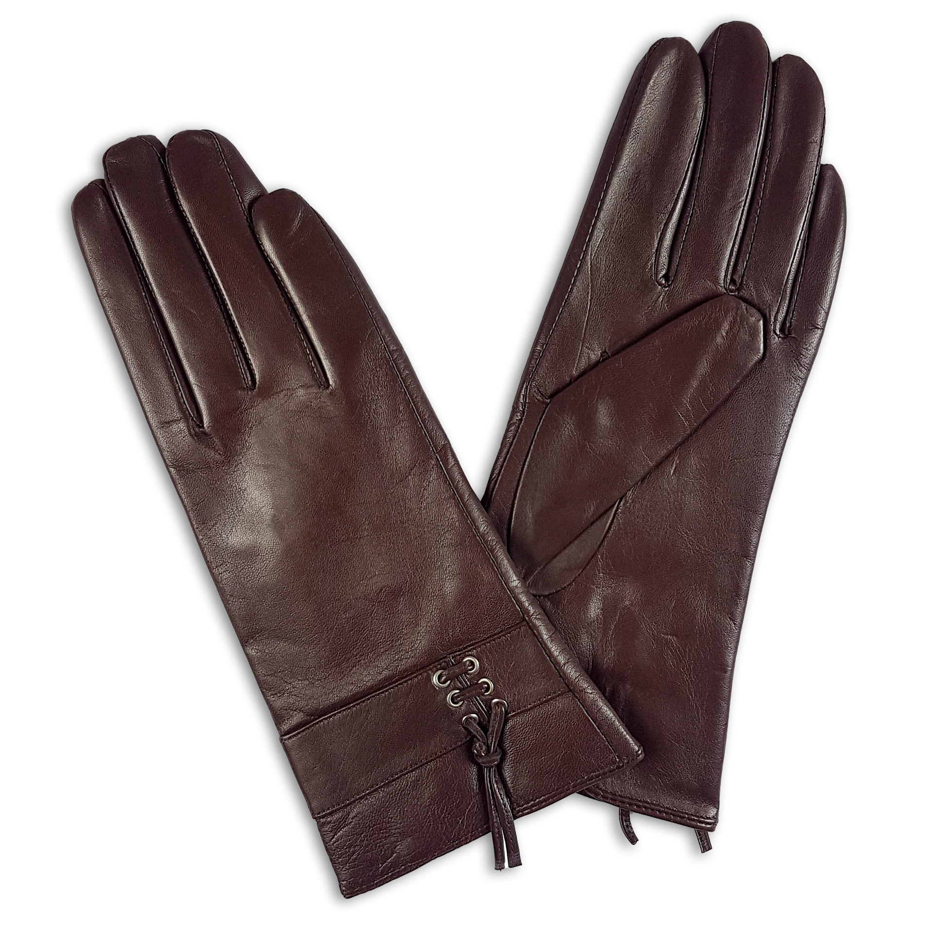 GUANTE DE CUERO MUJER, DORSO SUPERIOR CON ADORNO TIPO CIERRE CORSET