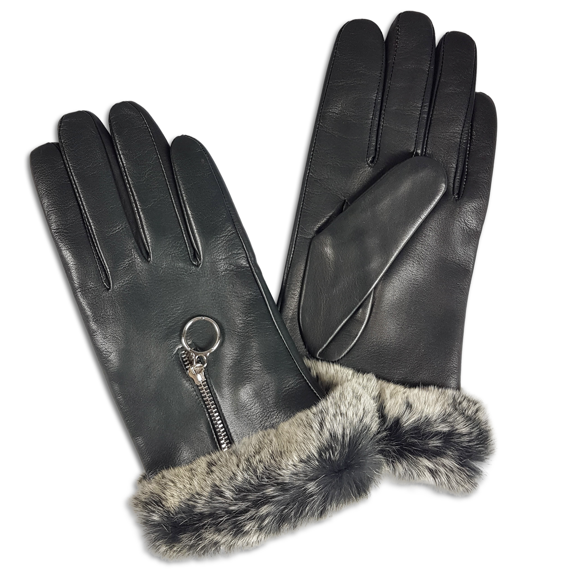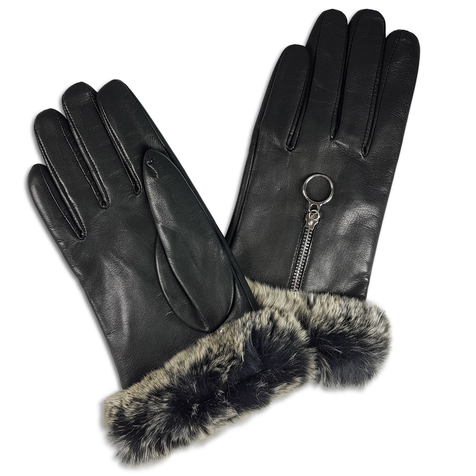 GUANTE DE MUJER 100% EN CUERO SUAVE CON INTERIOR DE LANA Y DETALLE EN PELO ANGORA, PARA DAR ELEGANCIA Y SOFISTICACIÓN A LOS DÍAS FRÍOS.