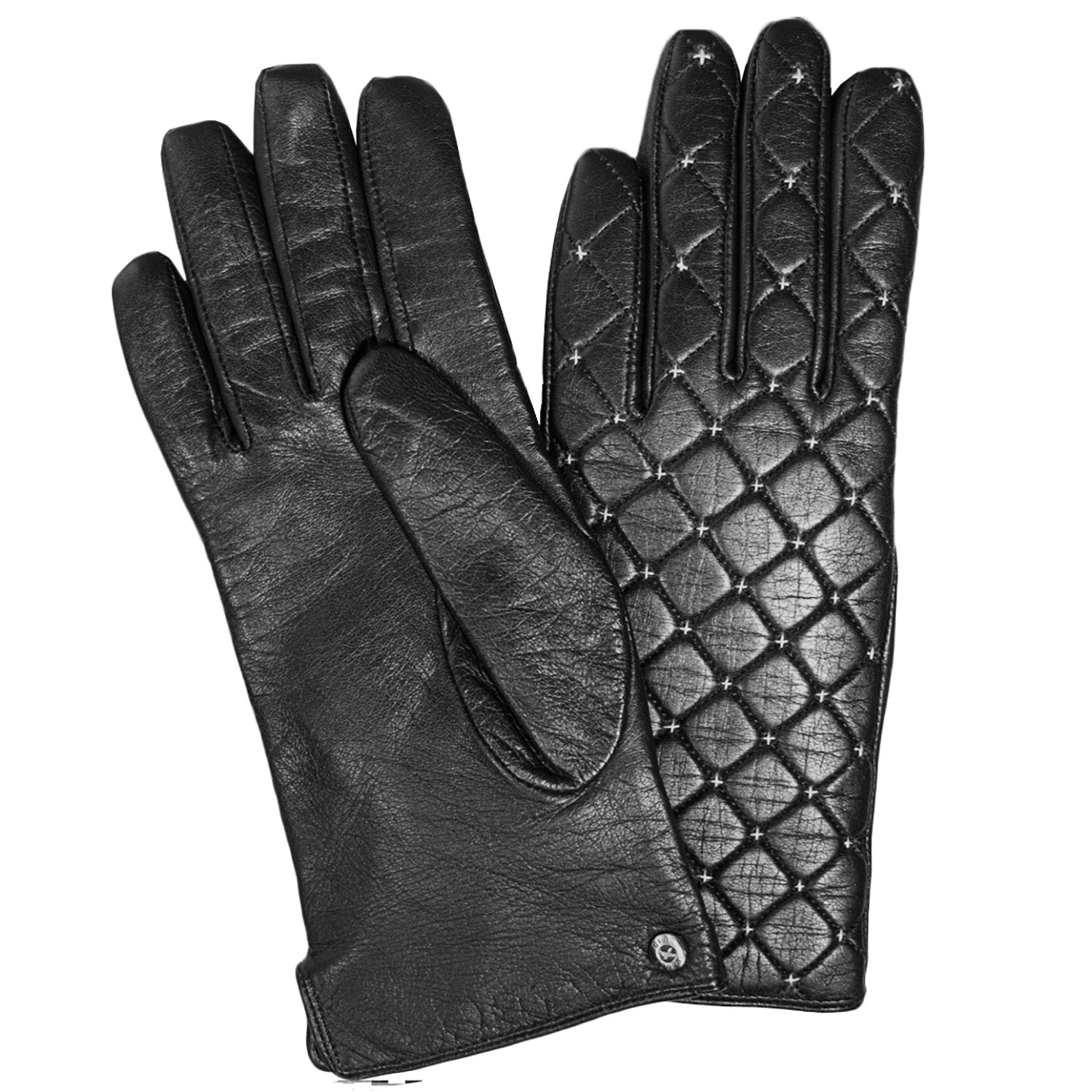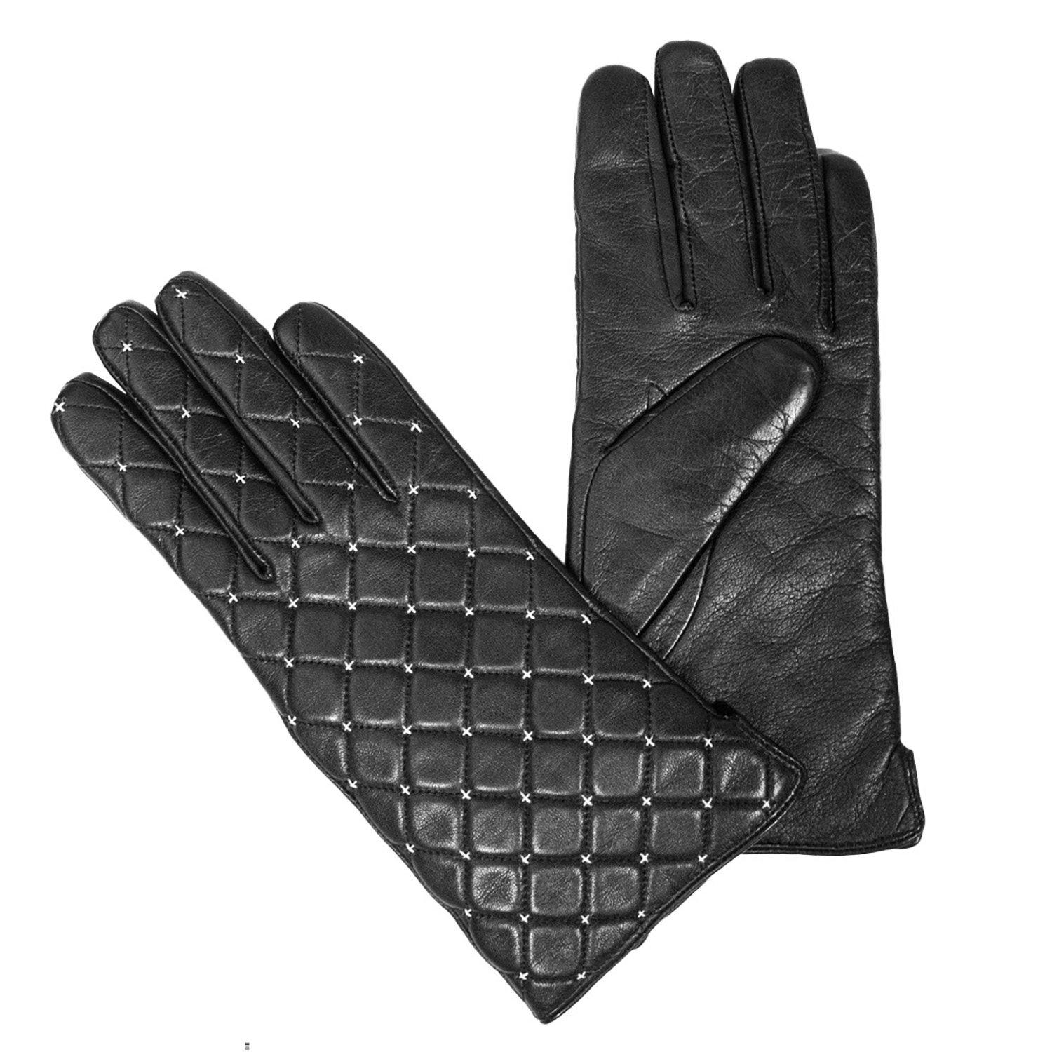 GUANTE DE CUERO MUJER, DORSO ACOLCHADO CON DISEÑO DE ROMBOS EN HILOS BLANCOS