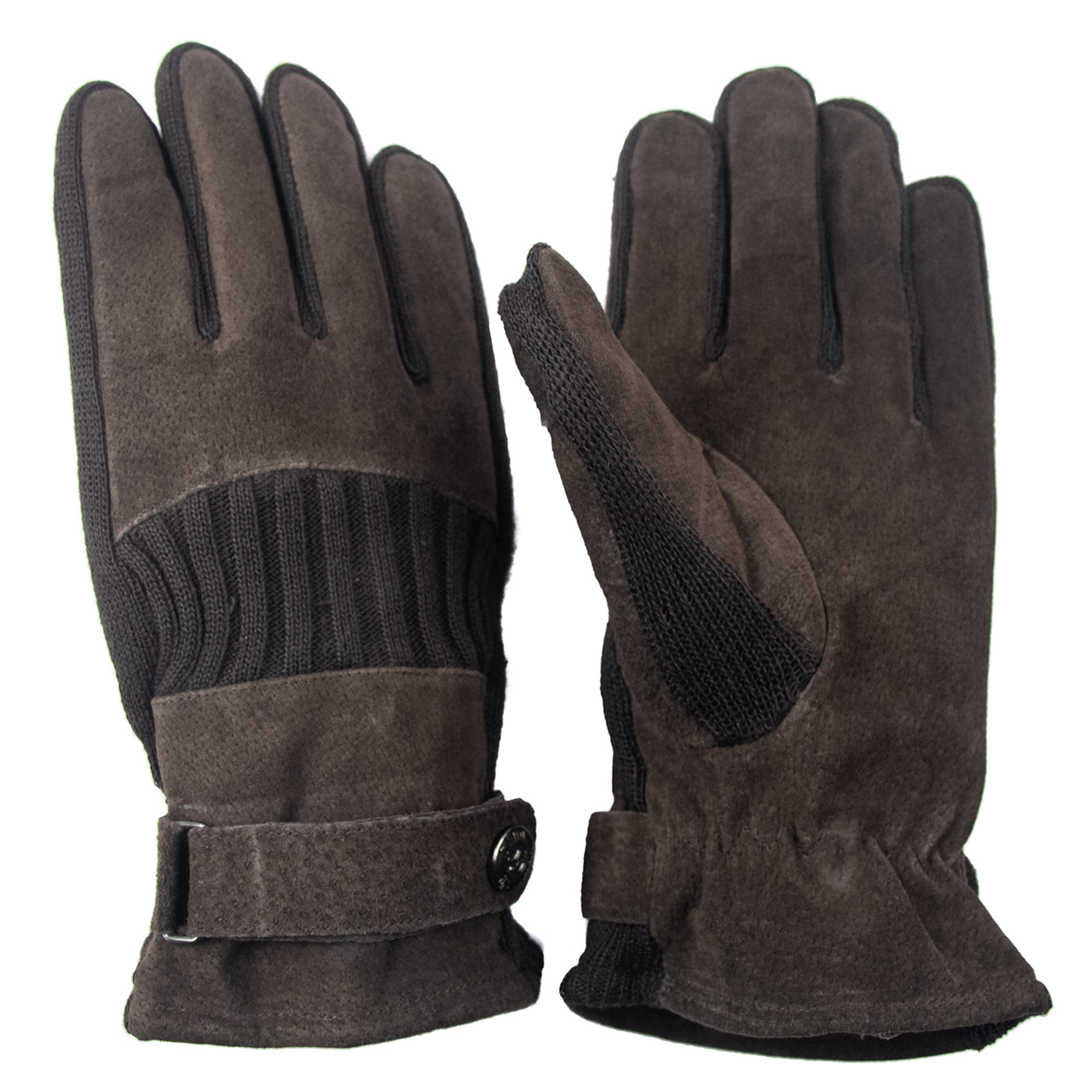 GUANTE DE HOMBRE DE CUERO GAMUZADO CON TEJIDO LATERAL Y FRONTAL