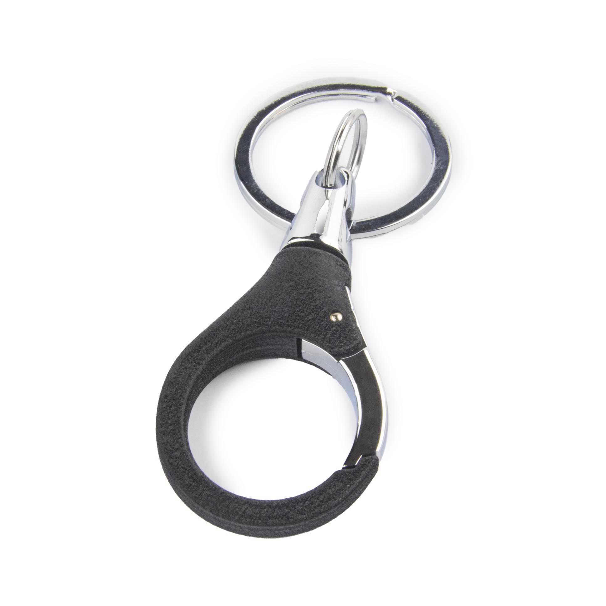 - Llavero con mosquetón metálico, resorteado, parcialmente recubierto por un suave garbillado, de color