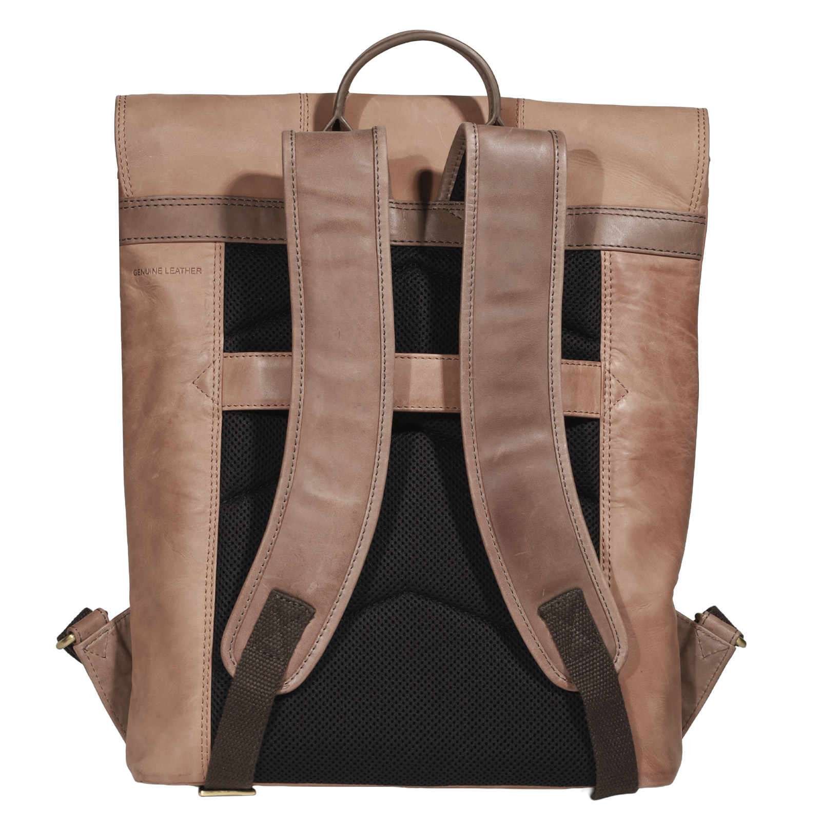 - Mochila cuenta con manilla superior de cuero