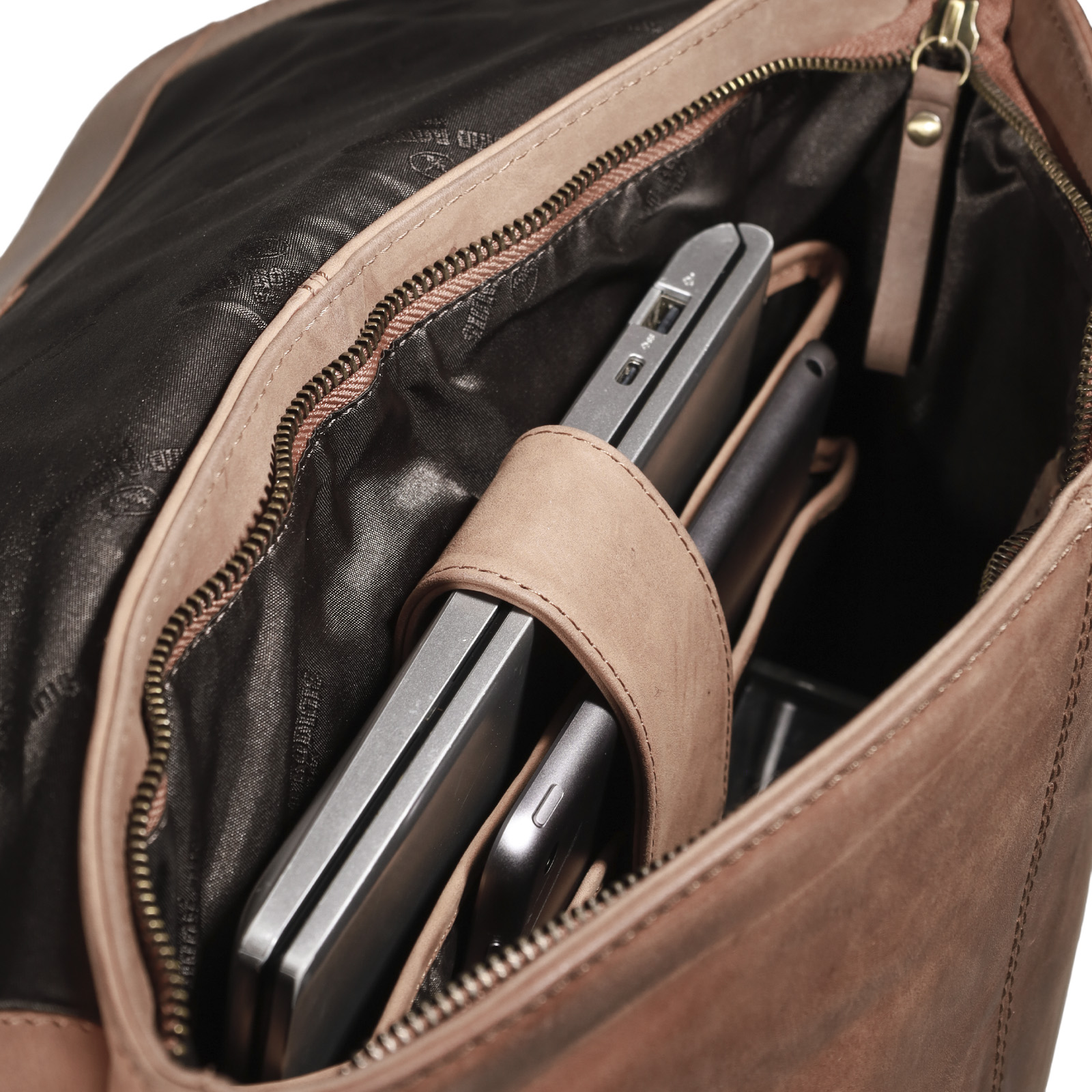 - Adicionalmente, cuenta con dos bolsillos interiores con cierre y otros simples