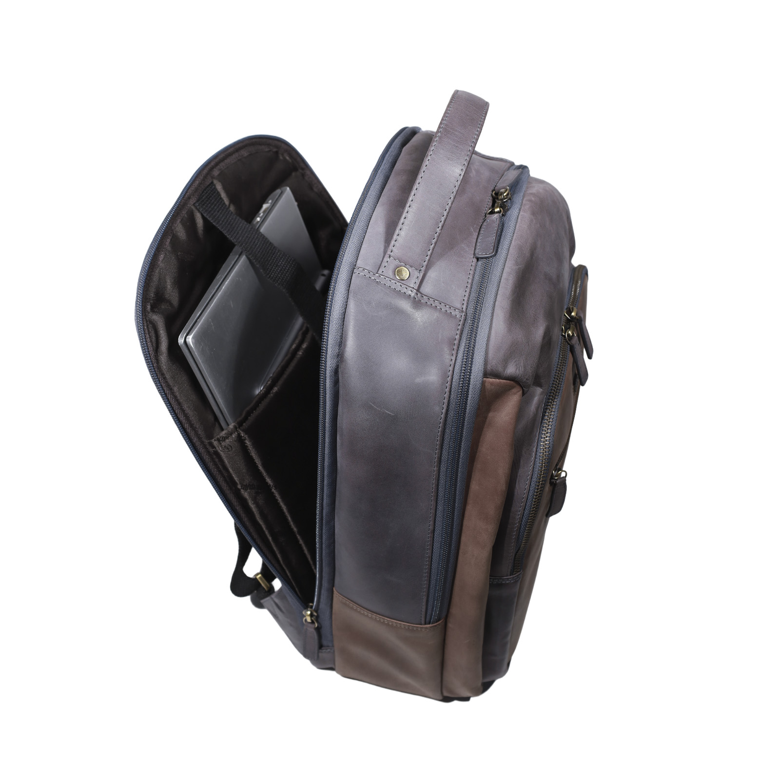 MOCHILA DE CUERO CON TRES GRANDES DIVISIONES MÁS BOLSILLO ANTERIOR CON CIERRE